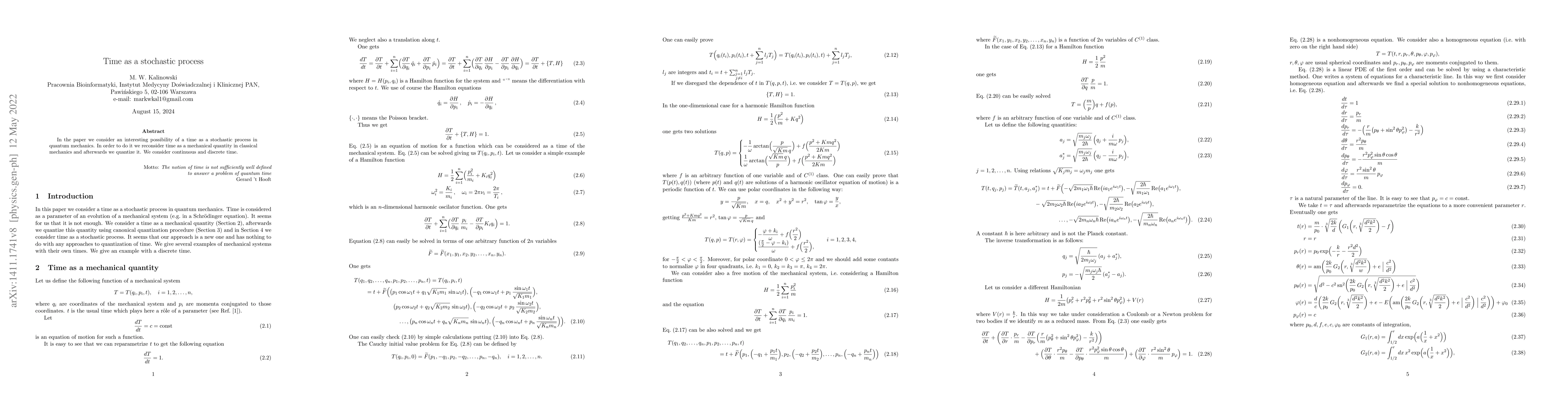 This paper explores the idea that time can be viewed as a stochastic process in quantum mechanics, considering both continuous and discrete approaches to quantizing time.