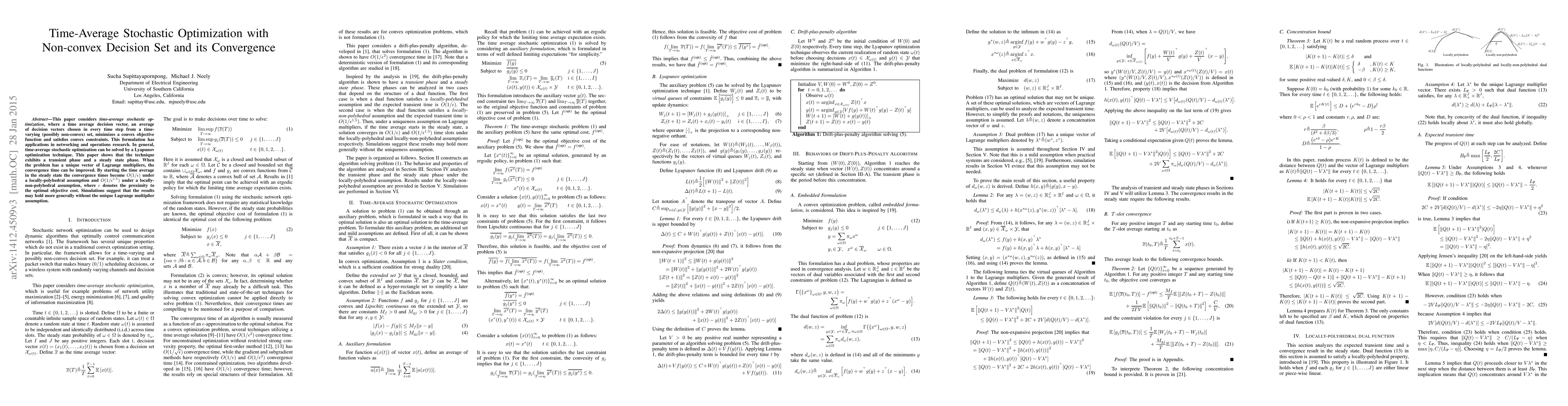 This paper explores time-average stochastic optimization with non-convex decision sets, demonstrating convergence through a Lyapunov optimization technique. It shows improved convergence times in steady states, achieving $O(1/\epsilon)$ under polyhedral assumptions and $O(1/\epsilon^{1.5})$ under non-polyhedral assumptions.