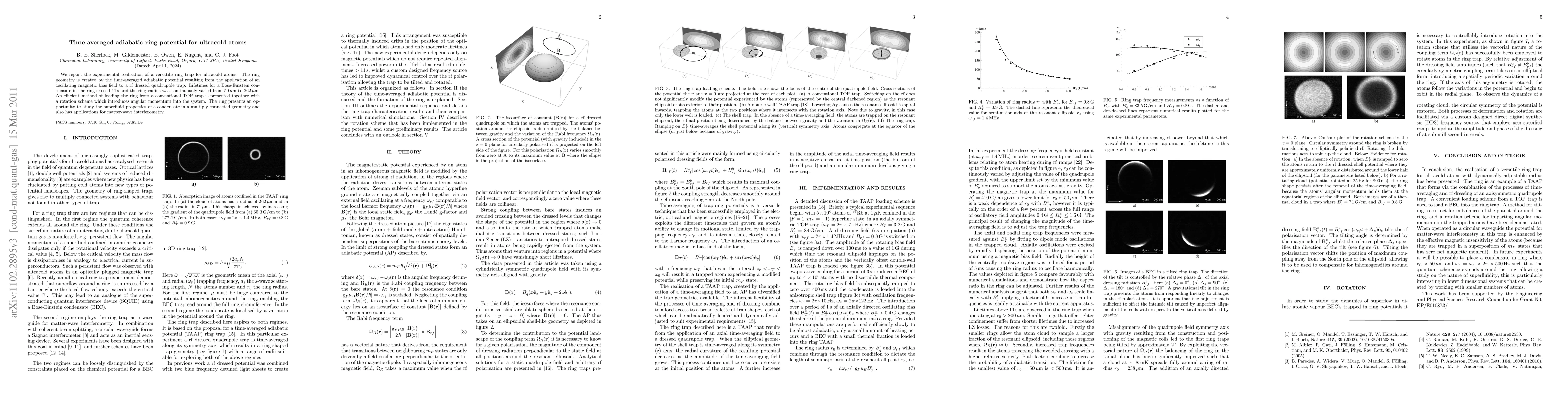 This research demonstrates a ring trap for ultracold atoms created via a time-averaged adiabatic potential from oscillating magnetic fields, enabling the study of superfluid properties in a multiply connected geometry and applications for matter-wave interferometry. The trap successfully loads Bose-Einstein condensates with lifetimes exceeding 11 seconds and adjustable ring radii.
