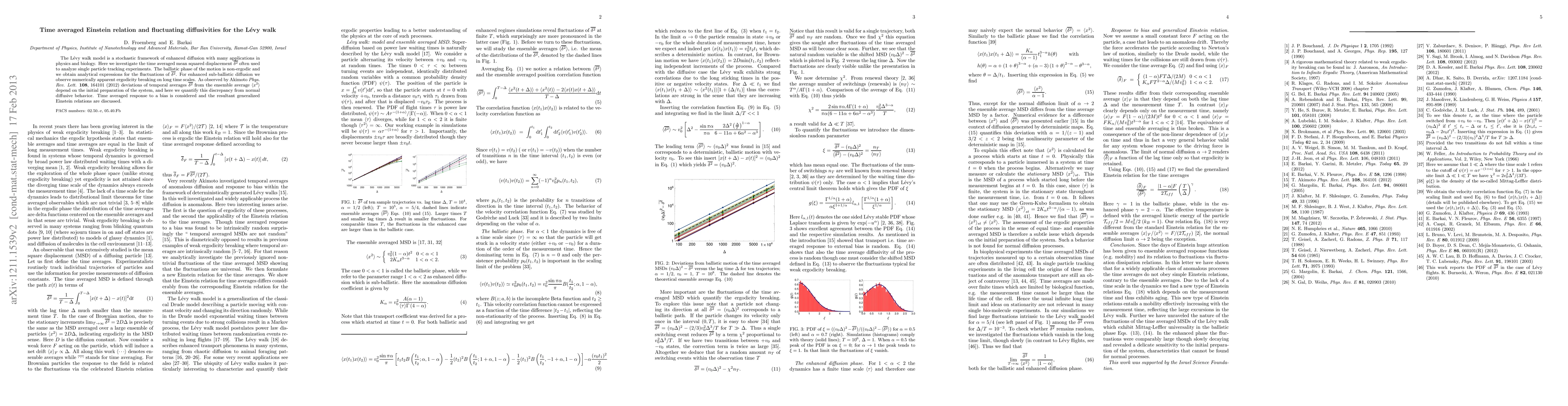 This research investigates the Lévy walk model, finding analytical expressions for the fluctuations of time-averaged mean squared displacement in its non-ergodic ballistic phase. It observes ergodicity breaking for enhanced sub-ballistic diffusion, quantifying deviations from normal diffusive behavior. The study also discusses generalized Einstein relations under time-averaged response to a bias.