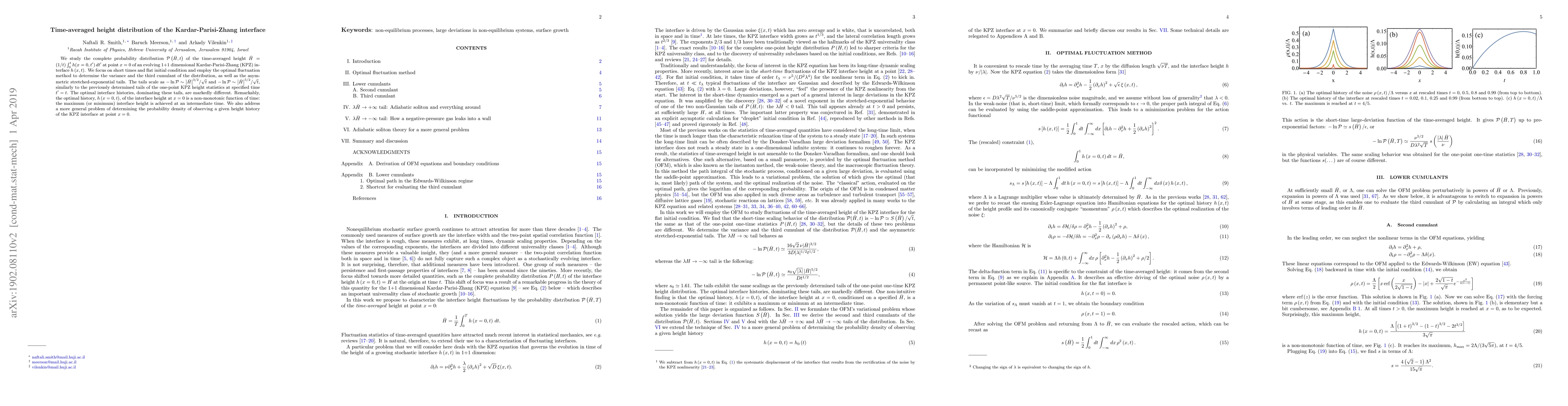 We study the complete probability distribution $\mathcal{P}\left(\bar{H},t\right)$ of the time-averaged height $\bar{H}=(1/t)\int_0^t h(x=0,t')\,dt'$ at point $x=0$ of an evolving 1+1 dimensional Kardar-Parisi-Zhang (KPZ) interface $h\left(x,t\right)$. We focus on short times and flat initial condition and employ the optimal fluctuation method to determine the variance and the third cumulant of the distribution, as well as the asymmetric stretched-exponential tails. The tails scale as $-\ln\mathcal{P}\sim\left|\bar{H}\right|^{3/2} \! /\sqrt{t}$ and $-\ln\mathcal{P}\sim\left|\bar{H}\right|^{5/2} \! /\sqrt{t}$, similarly to the previously determined tails of the one-point KPZ height statistics at specified time $t'=t$. The optimal interface histories, dominating these tails, are markedly different. Remarkably, the optimal history, $h\left(x=0,t\right)$, of the interface height at $x=0$ is a non-monotonic function of time: the maximum (or minimum) interface height is achieved at an intermediate time. We also address a more general problem of determining the probability density of observing a given height history of the KPZ interface at point $x=0$.