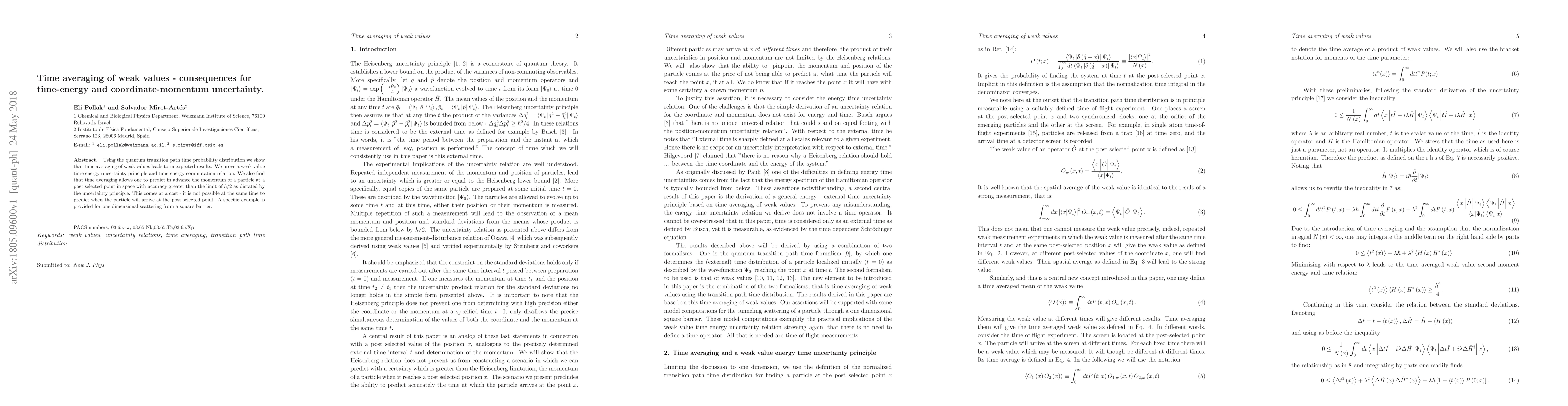 Using the quantum transition path time probability distribution we show that time averaging of weak values leads to unexpected results. We prove a weak value time energy uncertainty principle and time energy commutation relation. We also find that time averaging allows one to predict in advance the momentum of a particle at a post selected point in space with accuracy greater than the limit of $\hbar /2$ as dictated by the uncertainty principle. This comes at a cost - it is not possible at the same time to predict when the particle will arrive at the post selected point. A specific example is provided for one dimensional scattering from a square barrier.