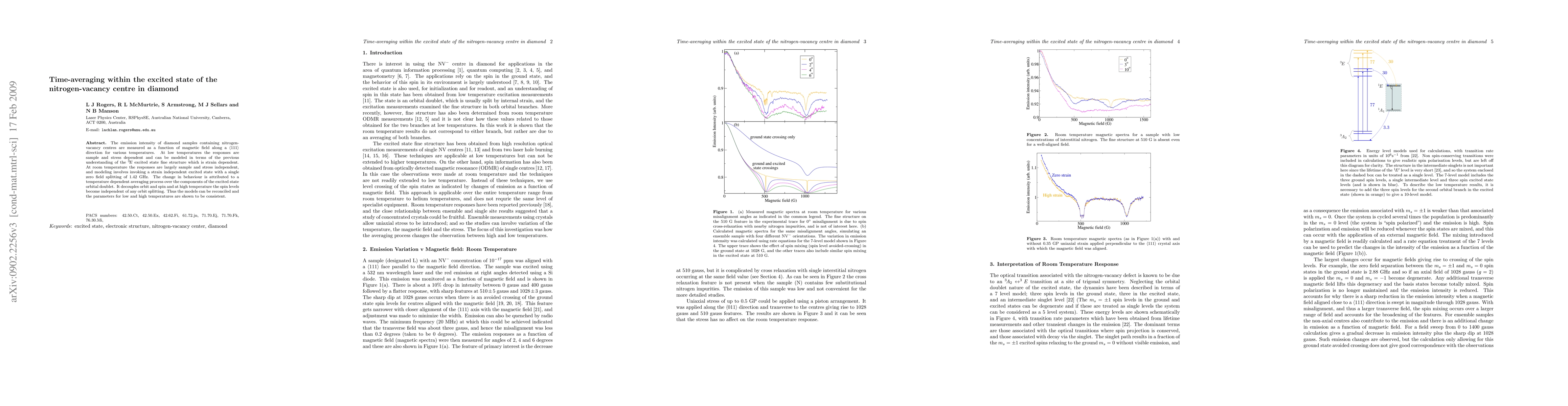 The emission intensity of diamond samples containing nitrogen-vacancy centres are measured as a function of magnetic field along a <111> direction for various temperatures. At low temperatures the responses are sample and stress dependent and can be modeled in terms of the previous understanding of the 3E excited state fine structure which is strain dependent. At room temperature the responses are largely sample and stress independent, and modeling involves invoking a strain independent excited state with a single zero field splitting of 1.42 GHz. The change in behaviour is attributed to a temperature dependent averaging process over the components of the excited state orbital doublet. It decouples orbit and spin and at high temperature the spin levels become independent of any orbit splitting. Thus the models can be reconciled and the parameters for low and high temperatures are shown to be consistent.