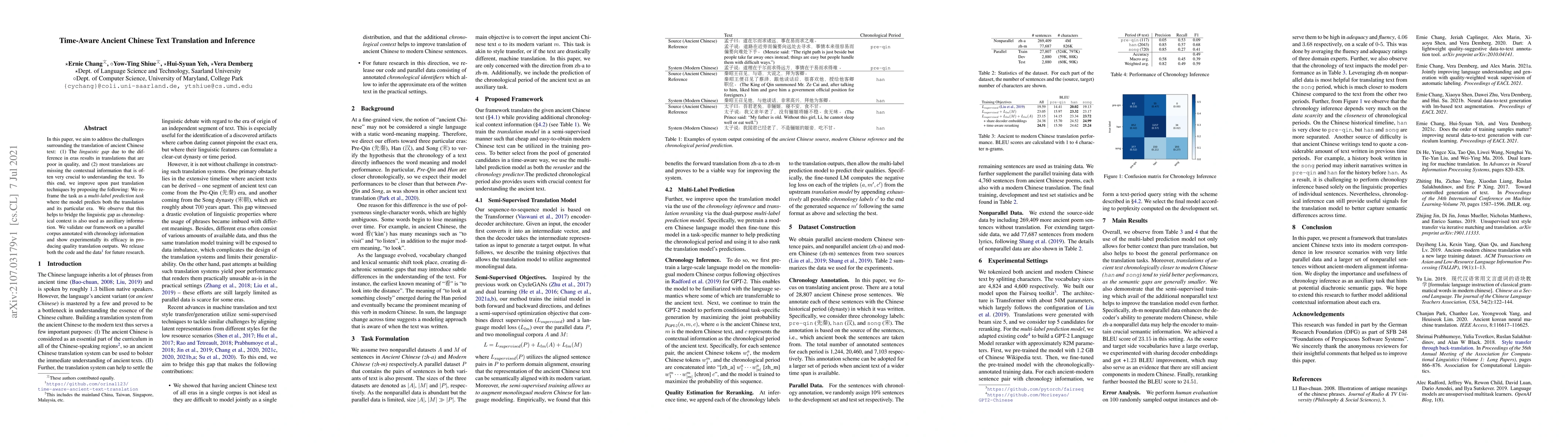 This paper proposes a novel approach to translating ancient Chinese text by framing it as a multi-label prediction task that includes era information, aiming to bridge linguistic gaps and improve translation quality. Experimental results demonstrate the framework's efficacy in producing high-quality translations.