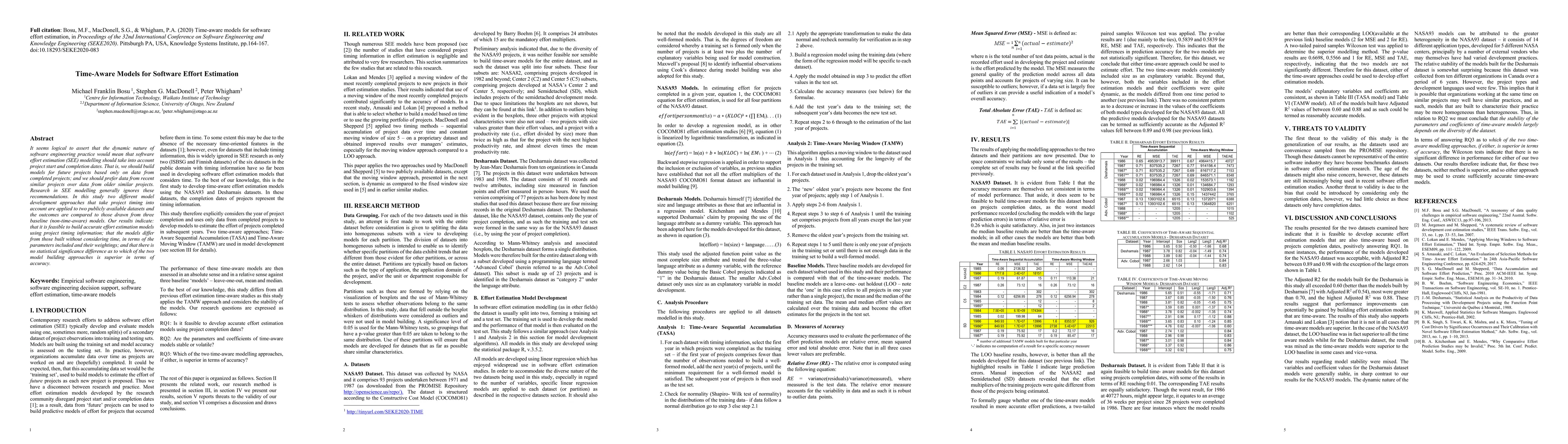 Research found that incorporating project timing into software effort estimation models can improve accuracy, with two approaches showing comparable results in building accurate effort estimation models.