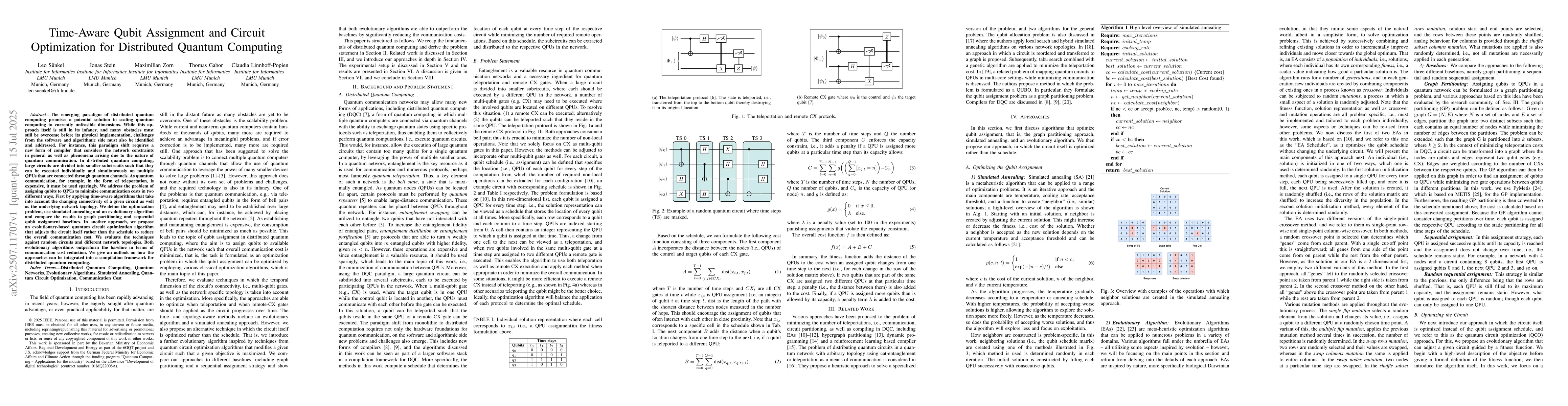 The emerging paradigm of distributed quantum computing promises a potential solution to scaling quantum computing to currently unfeasible dimensions. While this approach itself is still in its infancy, and many obstacles must still be overcome before its physical implementation, challenges from the software and algorithmic side must also be identified and addressed. For instance, this paradigm shift requires a new form of compiler that considers the network constraints in general as well as phenomena arising due to the nature of quantum communication. In distributed quantum computing, large circuits are divided into smaller subcircuits such that they can be executed individually and simultaneously on multiple QPUs that are connected through quantum channels. As quantum communication, for example, in the form of teleportation, is expensive, it must be used sparingly. We address the problem of assigning qubits to QPUs to minimize communication costs in two different ways. First by applying time-aware algorithms that take into account the changing connectivity of a given circuit as well as the underlying network topology. We define the optimization problem, use simulated annealing and an evolutionary algorithm and compare the results to graph partitioning and sequential qubit assignment baselines. In another approach, we propose an evolutionary-based quantum circuit optimization algorithm that adjusts the circuit itself rather than the schedule to reduce the overall communication cost. We evaluate the techniques against random circuits and different network topologies. Both evolutionary algorithms outperform the baseline in terms of communication cost reduction. We give an outlook on how the approaches can be integrated into a compilation framework for distributed quantum computing.