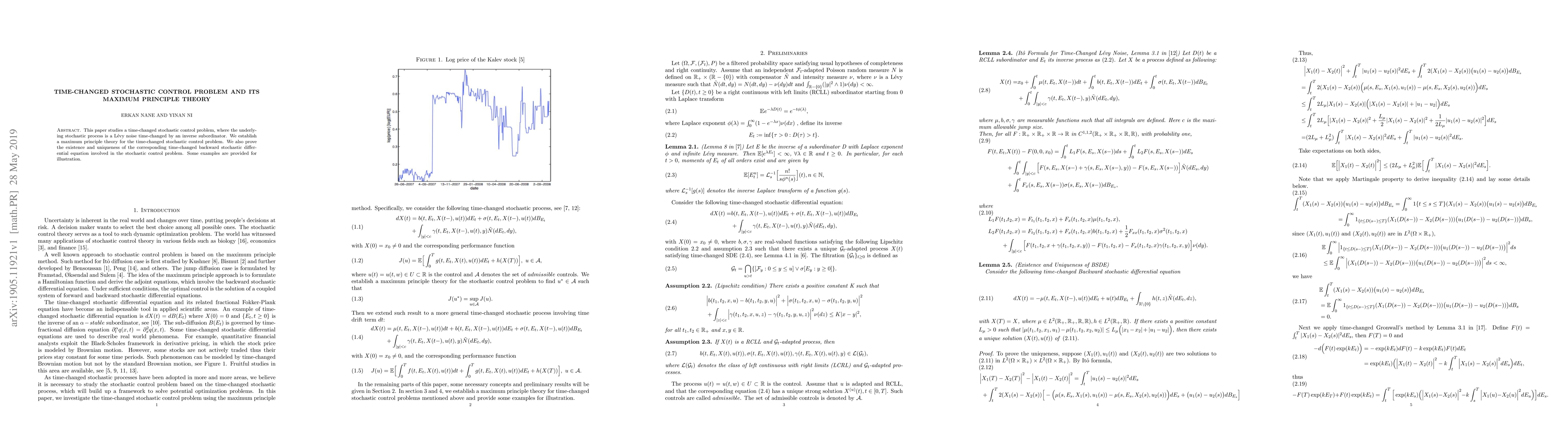 This paper studies a time-changed stochastic control problem, where the underlying stochastic process is a L\'evy noise time-changed by an inverse subordinator. We establish a maximum principle theory for the time-changed stochastic control problem. We also prove the existence and uniqueness of the corresponding time-changed backward stochastic differential equation involved in the stochastic control problem. Some examples are provided for illustration.