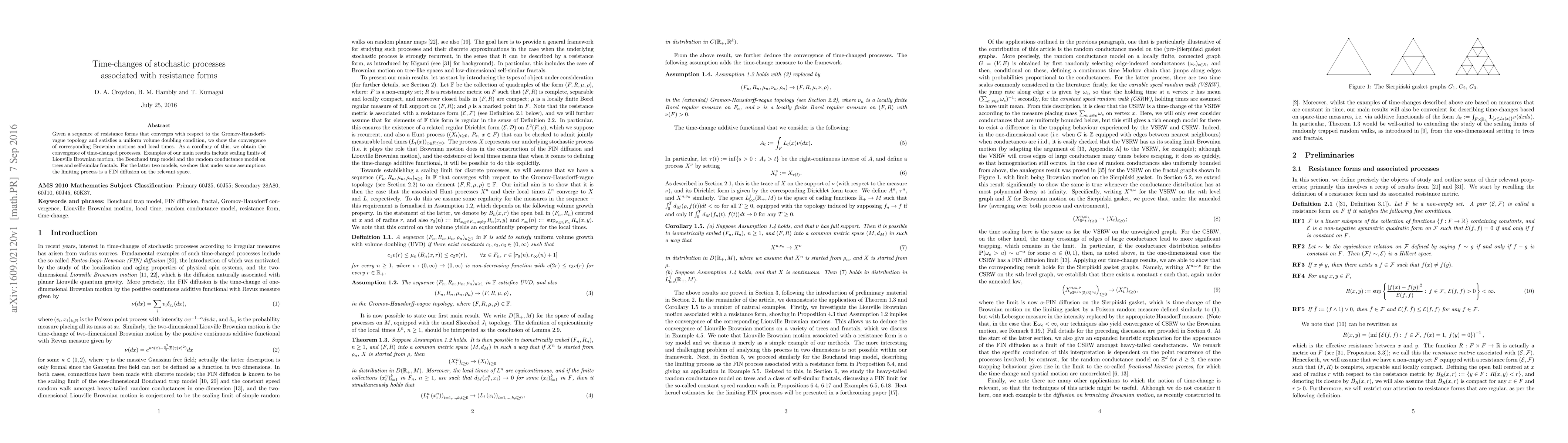 This paper demonstrates the convergence of Brownian motions and local times for sequences of resistance forms that meet specific topological and volume conditions. As a result, it also shows the convergence of time-changed processes, with applications to scaling limits of Liouville Brownian motion, the Bouchaud trap model, and random conductance models on trees and fractals, where the limiting process is identified as a fractional diffusion.