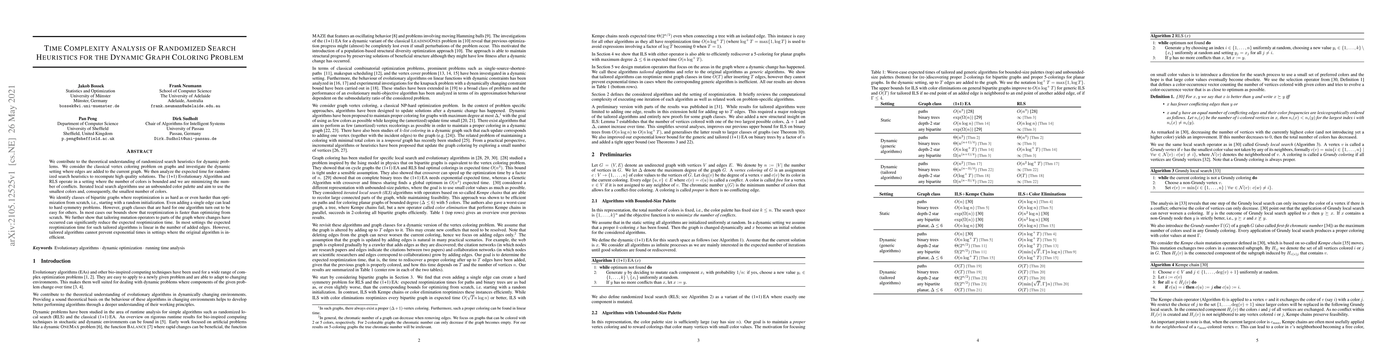 This paper analyzes the time complexity of randomized search heuristics for dynamic graph coloring, showing that while reoptimization is often faster than starting from scratch, it can be exponentially harder in some cases. Tailored mutation operators significantly reduce reoptimization time, typically to linear in the number of added edges.