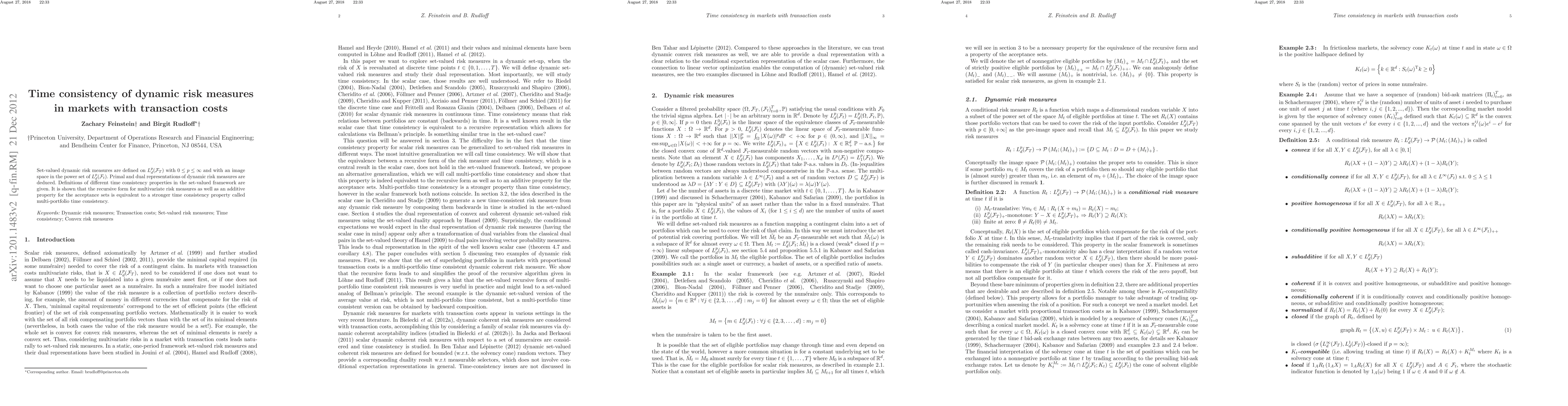 This paper explores the time consistency of set-valued dynamic risk measures in markets with transaction costs, revealing that the usual equivalence between recursive risk measures and time consistency does not hold. Instead, it introduces a new concept called multi-portfolio time consistency, which is shown to be equivalent to the recursive form and an additive property for acceptance sets.