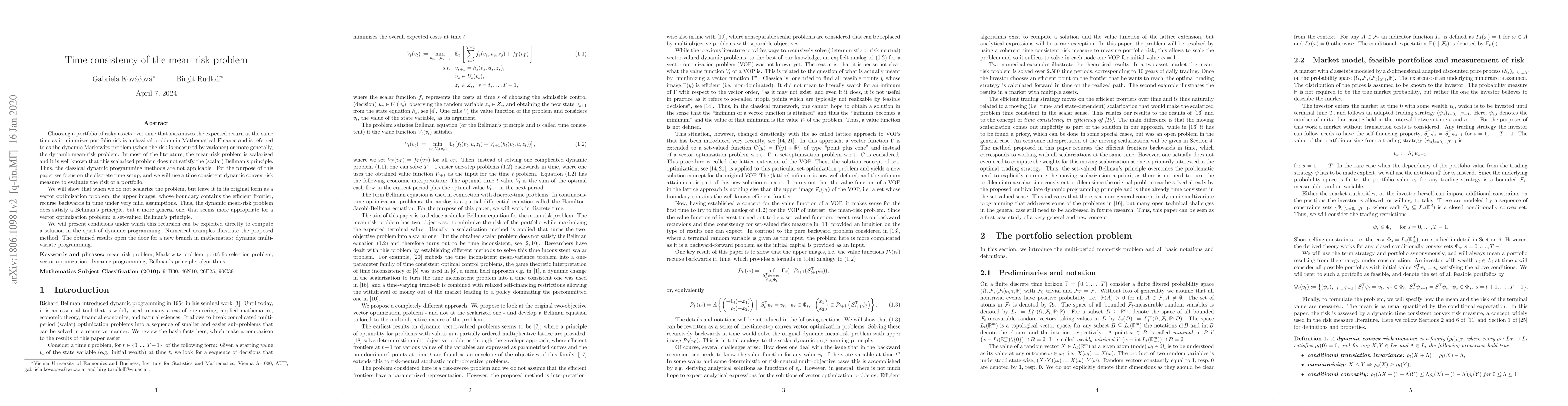 Researchers show that a dynamic mean-risk problem satisfies a set-valued Bellman's principle, enabling recursive solutions to be derived under mild assumptions, with potential applications in dynamic multivariate programming.
