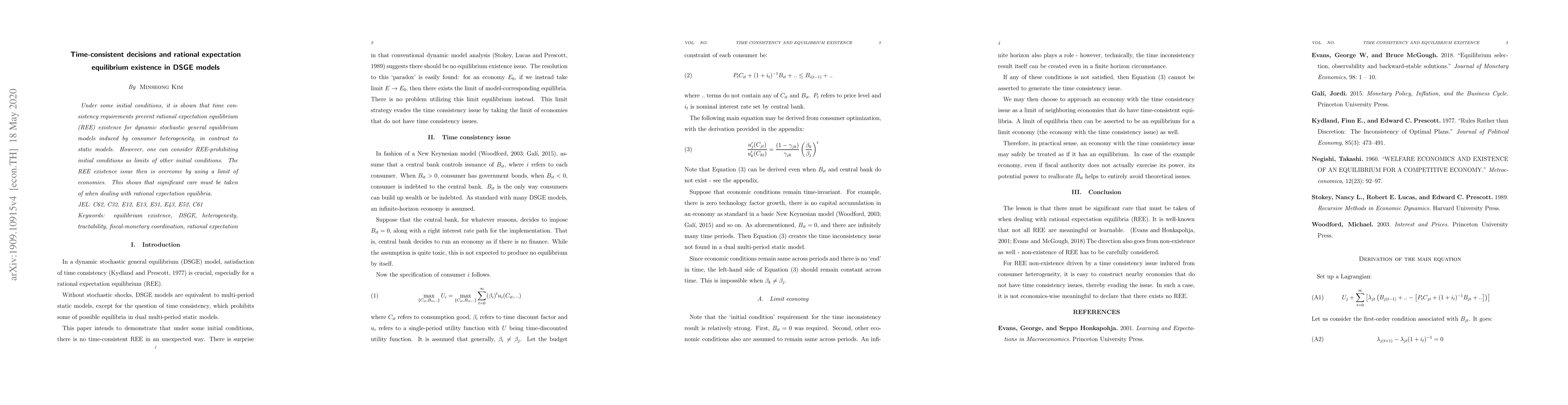 Under some initial conditions, it is shown that time consistency requirements prevent rational expectation equilibrium (REE) existence for dynamic stochastic general equilibrium models induced by consumer heterogeneity, in contrast to static models. However, one can consider REE-prohibiting initial conditions as limits of other initial conditions. The REE existence issue then is overcome by using a limit of economies. This shows that significant care must be taken of when dealing with rational expectation equilibria.