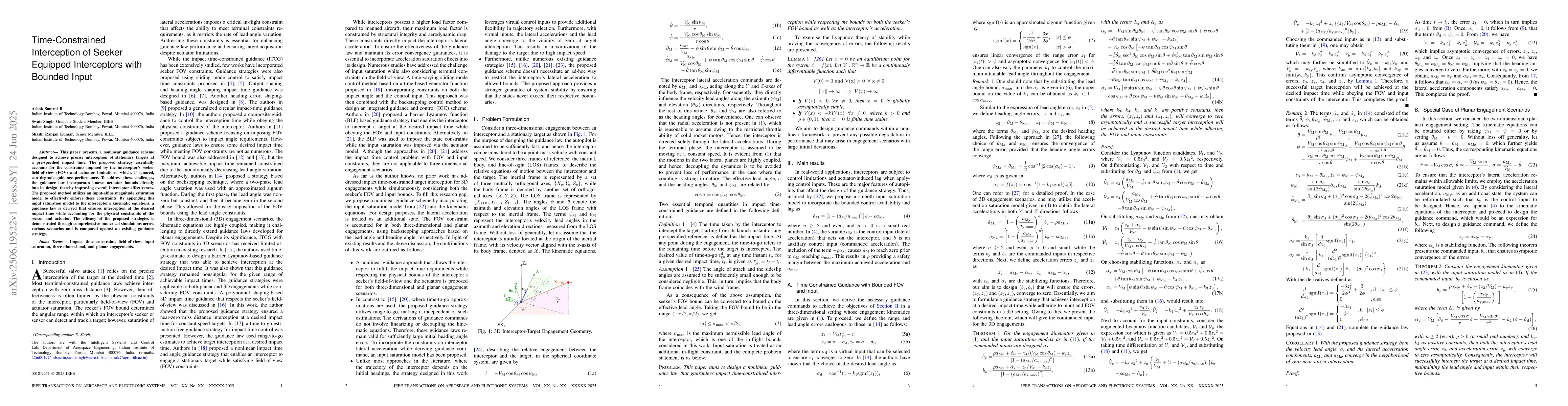This paper presents a nonlinear guidance scheme designed to achieve precise interception of stationary targets at a pre-specified impact time. The proposed strategy essentially accounts for the constraints imposed by the interceptor's seeker field-of-view (FOV) and actuator limitations, which, if ignored, can degrade guidance performance. To address these challenges, the guidance law incorporates known actuator bounds directly into its design, thereby improving overall interceptor effectiveness. The proposed method utilizes an input-affine magnitude saturation model to effectively enforce these constraints. By appending this input saturation model to the interceptor's kinematic equations, a guidance law is derived that ensures interception at the desired impact time while accounting for the physical constraints of the sensor and actuator. The efficacy of the proposed strategies is demonstrated through comprehensive numerical simulations across various scenarios and is compared against an existing guidance strategy.