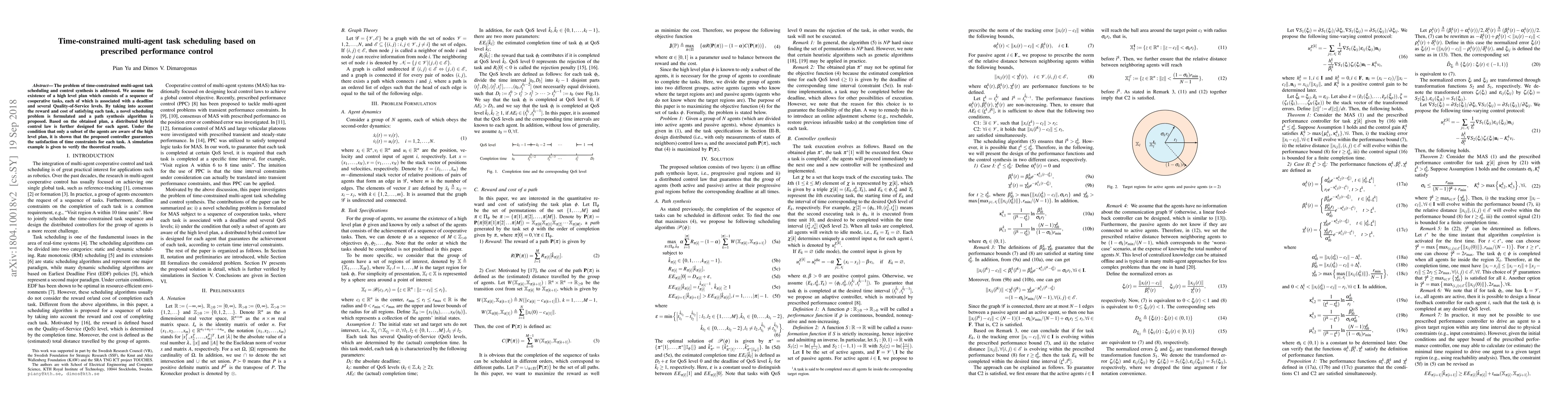 A novel scheduling algorithm is proposed to schedule multi-agent tasks with deadlines and Quality-of-Service levels, ensuring task satisfaction within time constraints. The algorithm guarantees performance control even when only a subset of agents has access to the high-level plan.