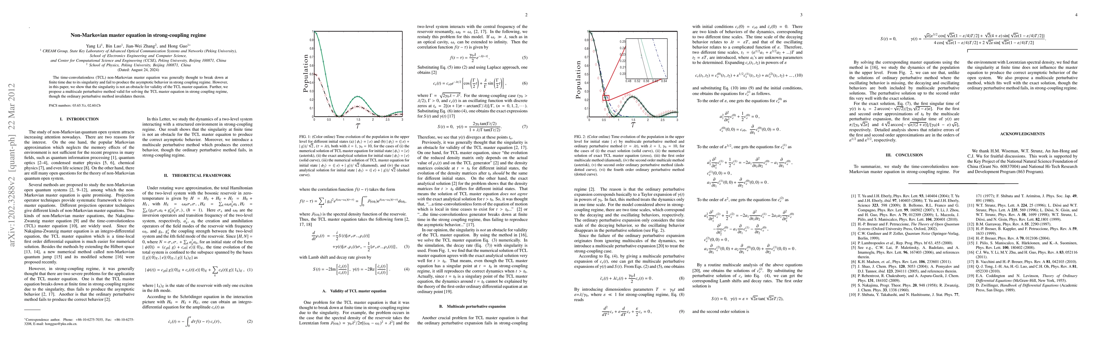 A multiscale perturbation method was used to study the dynamics of open quantum systems in strong coupling regimes.
