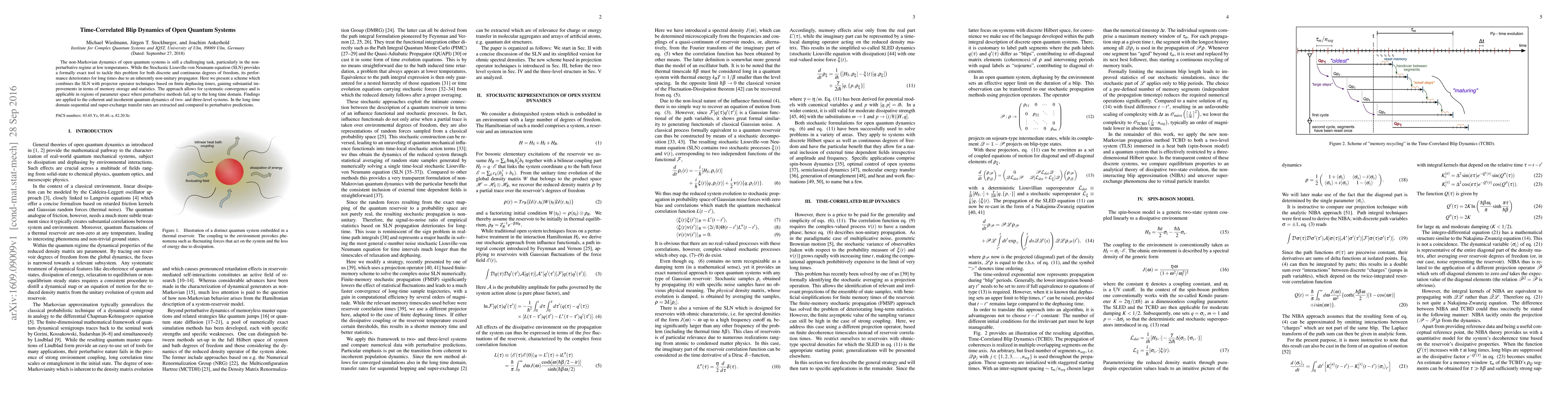 The non-Markovian dynamics of open quantum systems is still a challenging task, particularly in the non-perturbative regime at low temperatures. While the Stochastic Liouville-von Neumann equation (SLN) provides a formally exact tool to tackle this problem for both discrete and continuous degrees of freedom, its performance deteriorates for long times due to an inherently non-unitary propagator. Here we present a scheme which combines the SLN with projector operator techniques based on finite dephasing times, gaining substantial improvements in terms of memory storage and statistics. The approach allows for systematic convergence and is applicable in regions of parameter space where perturbative methods fail, up to the long time domain. Findings are applied to the coherent and incoherent quantum dynamics of two- and three-level systems. In the long time domain sequential and super-exchange transfer rates are extracted and compared to perturbative predictions.