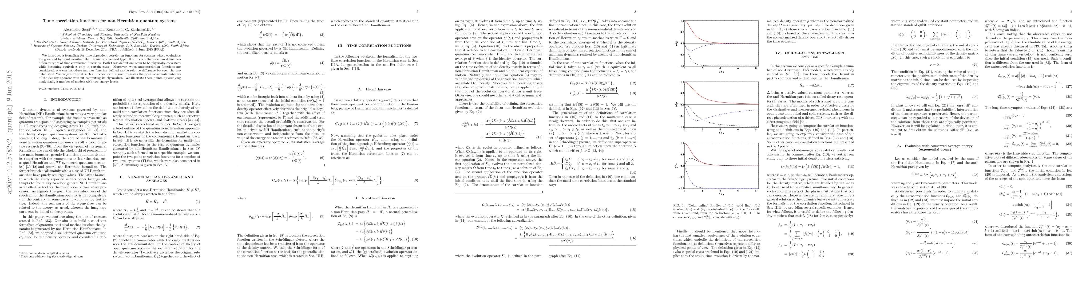 This paper develops a formalism for time-dependent correlation functions in non-Hermitian quantum systems, identifying two physically consistent definitions that are equivalent in specific scenarios. It proposes a relative difference function for autocorrelation that may assess the positive semi-definiteness of the density operator without eigenvalue computation, demonstrated through two-level model analyses.