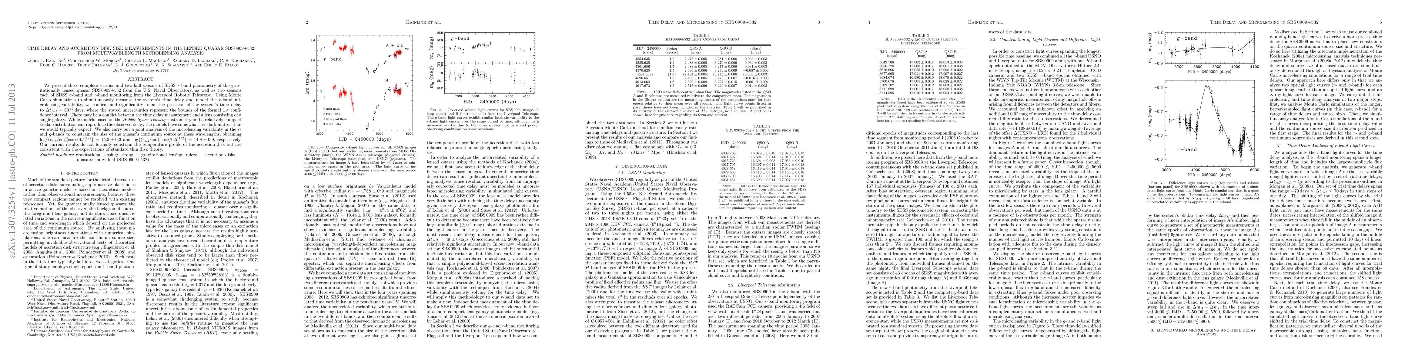 This study uses multiwavelength microlensing analysis to refine the time delay measurement in the lensed quasar SBS 0909+532, finding a time delay of Δt_{AB} = 50^{+2}_{-4} days. The analysis also constrains the size of the quasar's continuum source in the r- and g-bands, though it does not formally constrain the accretion disk's temperature profile.