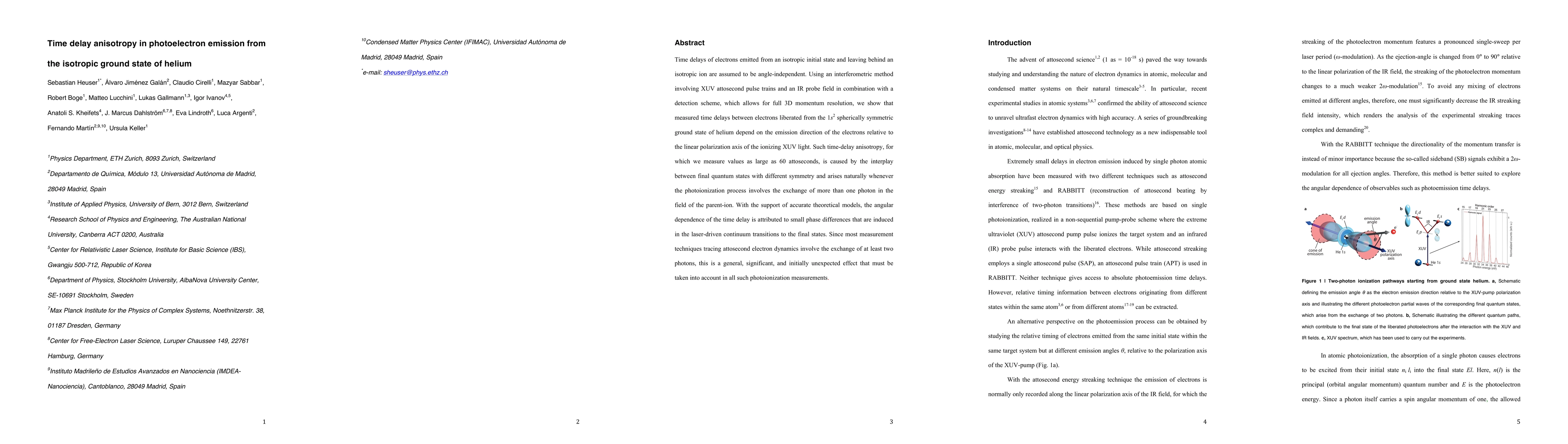 The research reveals that time delays in electron emission from helium's isotropic ground state depend on the electron's emission direction relative to XUV light's polarization axis, showing anisotropy of up to 60 attoseconds. This effect, caused by the interplay of final quantum states with different symmetry and multi-photon exchange, is significant for interpreting attosecond electron dynamics measurements.
