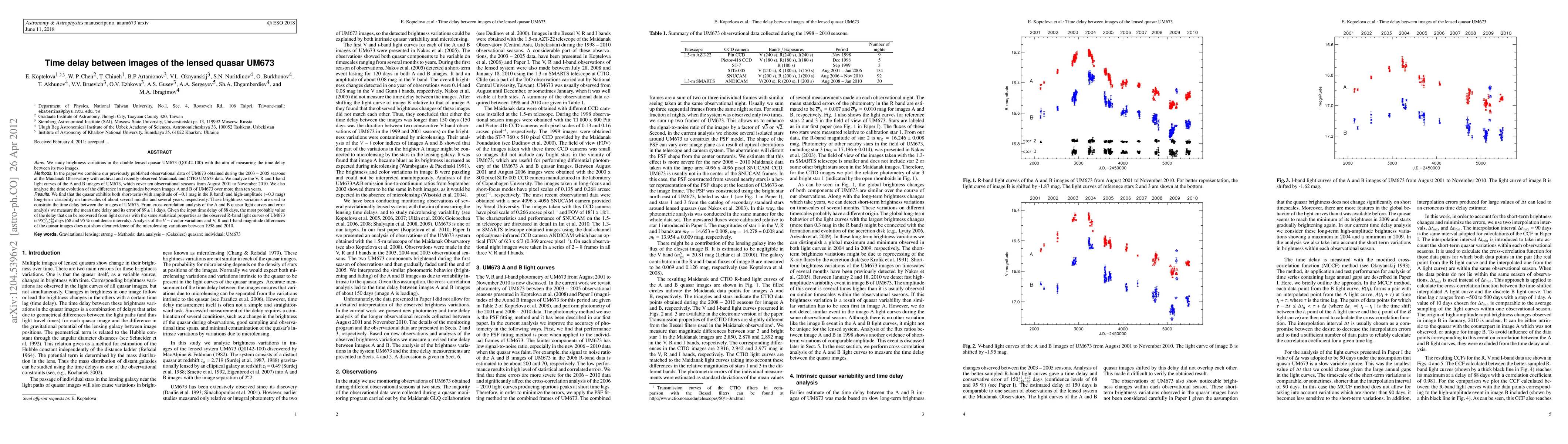 This study measures the time delay between the two images of the lensed quasar UM673 by analyzing brightness variations over ten observational seasons. The mean time delay is determined to be 89 ± 11 days, with a most probable value of 95 ± 25 days, indicating significant variability in the quasar's brightness.