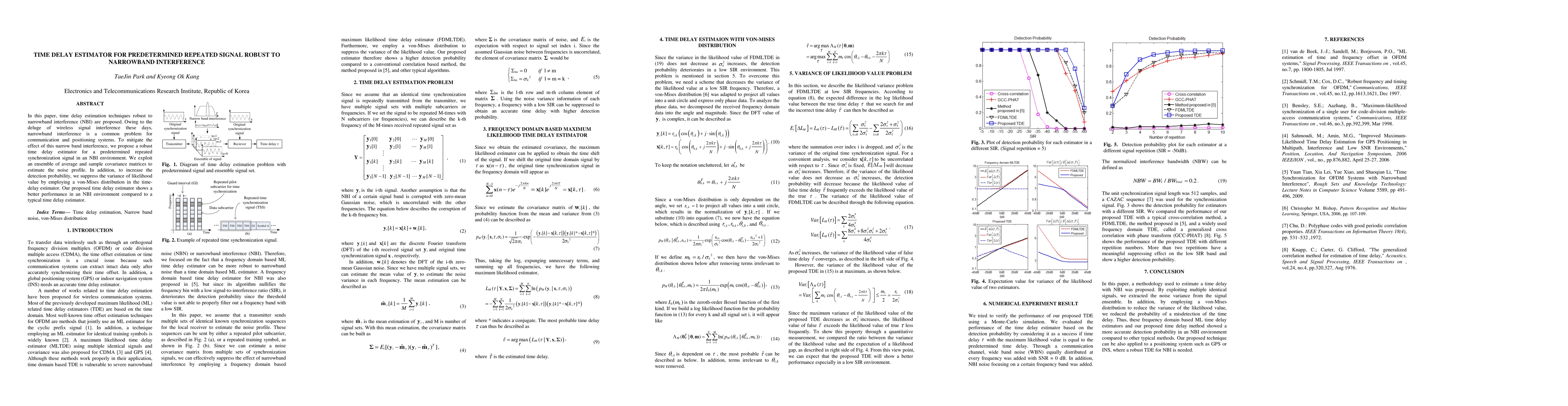 The research proposes a robust time delay estimator for predetermined repeated synchronization signals in an environment with narrowband interference (NBI).