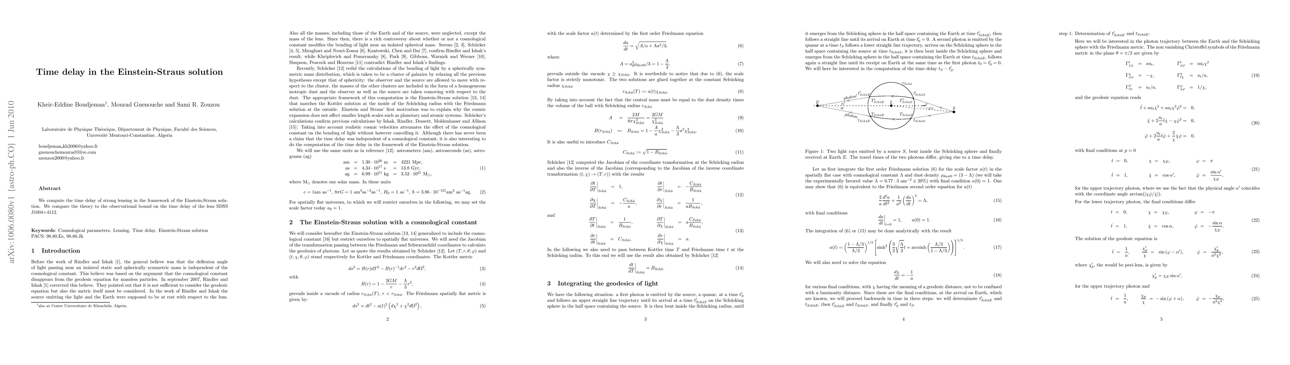The time delay of strong lensing is computed in the framework of the Einstein-Straus solution. The theory is compared to the observational bound on the time delay of the lens SDSS J1004+4112.