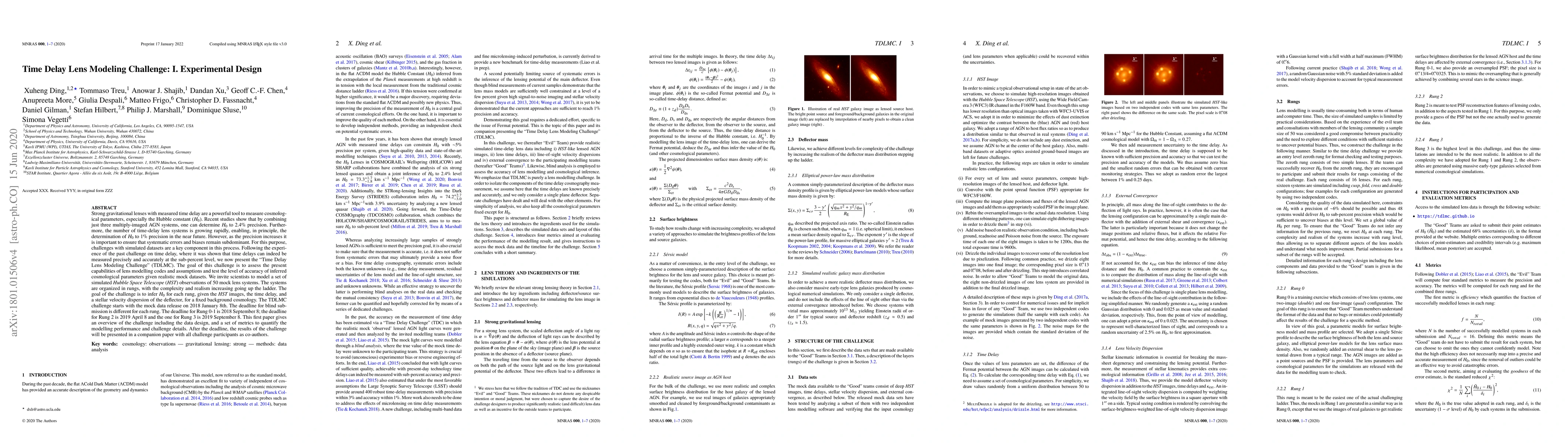 This paper introduces the "Time Delay Lens Modeling Challenge" (TDLMC) to evaluate the precision of lens modeling codes and their assumptions in inferring cosmological parameters, particularly the Hubble constant ($H_0$). Participants are invited to model simulated HST observations of 50 mock lens systems to assess the accuracy of inferred $H_0$ values.