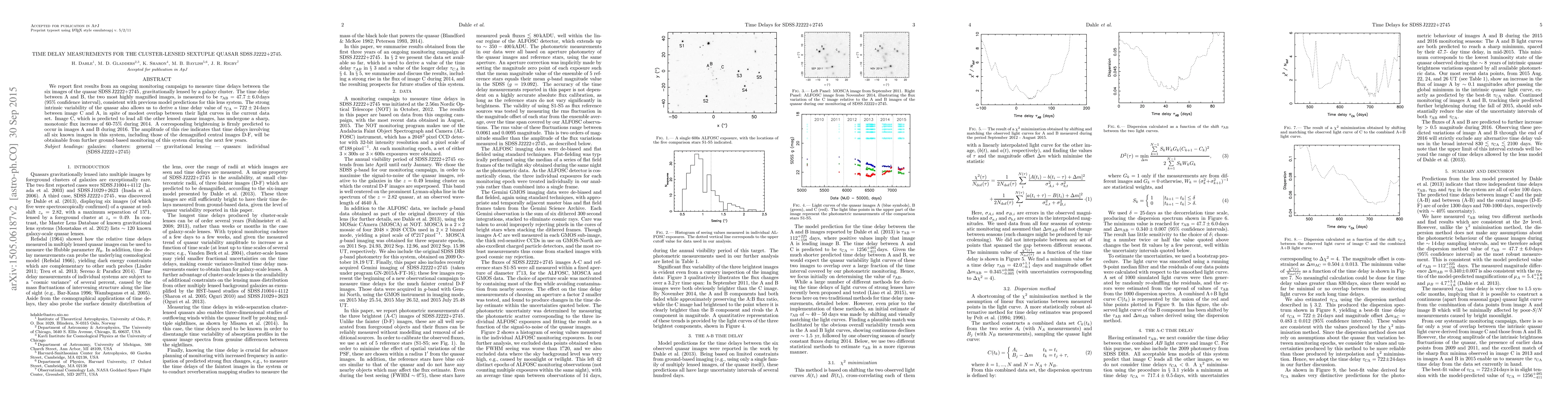 This study measures time delays between the six images of the cluster-lensed quasar SDSS J2222+2745, finding $\tau_{\rm AB} = 47.7 \pm 6.0$ days and $\tau_{\rm CA} = 722 \pm 24$ days. The results support predictions and suggest future monitoring can determine delays for all six images.