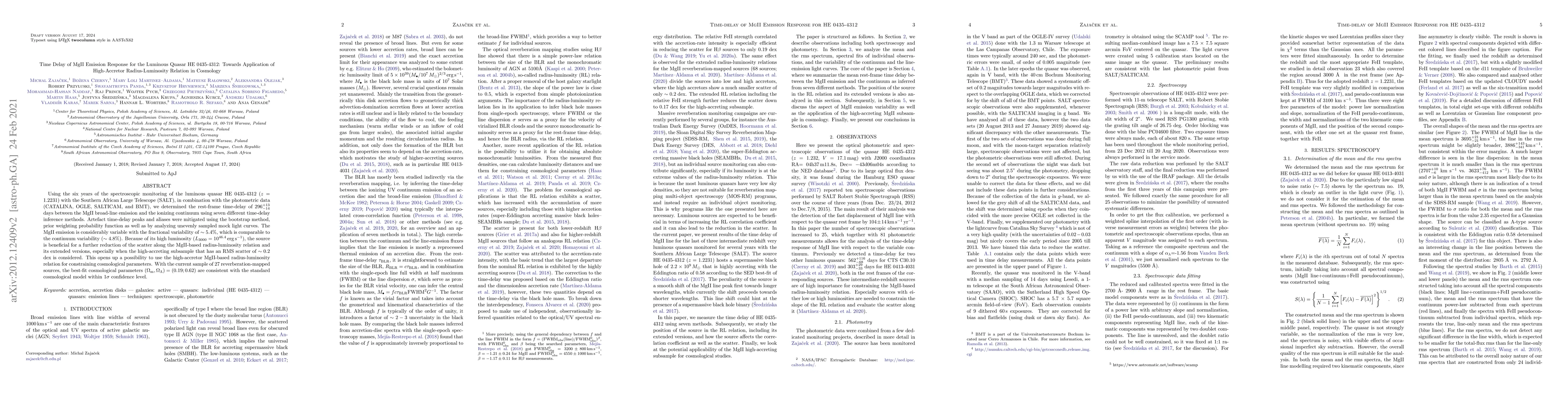 Using the six years of the spectroscopic monitoring of the luminous quasar HE 0435-4312 ($z=1.2231$) with the Southern African Large Telescope (SALT), in combination with the photometric data (CATALINA, OGLE, SALTICAM, and BMT), we determined the rest-frame time-delay of $296^{+13}_{-14}$ days between the MgII broad-line emission and the ionizing continuum using seven different time-delay inference methods. Artefact time-delay peaks and aliases were mitigated using the bootstrap method, prior weighting probability function as well as by analyzing unevenly sampled mock light curves. The MgII emission is considerably variable with the fractional variability of $\sim 5.4\%$, which is comparable to the continuum variability ($\sim 4.8\%$). Because of its high luminosity ($L_{3000}=10^{46.4}\,{\rm erg\,s^{-1}}$), the source is beneficial for a further reduction of the scatter along the MgII-based radius-luminosity relation and its extended versions, especially when the high-accreting subsample that has an RMS scatter of $\sim 0.2$ dex is considered. This opens up a possibility to use the high-accretor MgII-based radius-luminosity relation for constraining cosmological parameters. With the current sample of 27 reverberation-mapped sources, the best-fit cosmological parameters $(\Omega_{\rm m}, \Omega_{\Lambda})=(0.19; 0.62)$ are consistent with the standard cosmological model within 1$\sigma$ confidence level.