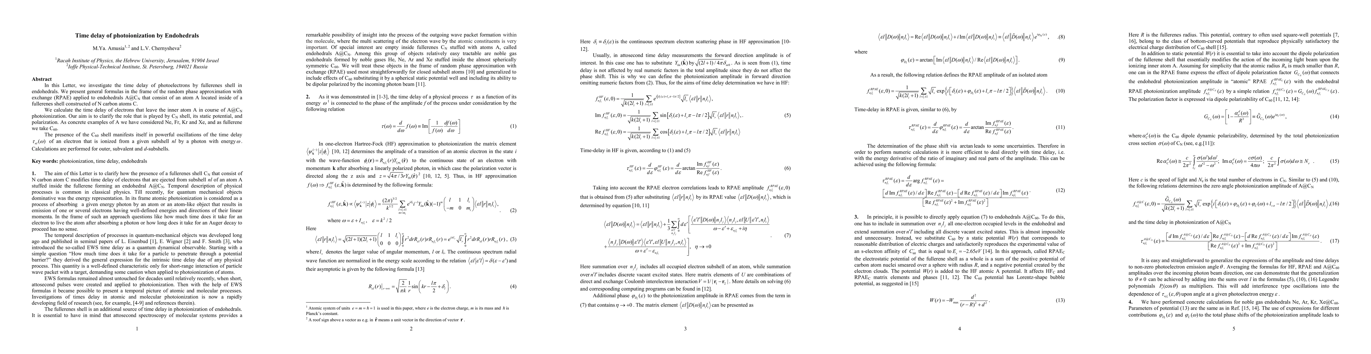 The paper introduces a method to calculate time delays in endohedrals A@CN using RPAE within the framework of bottom-curved potentials, considering dipole polarization effects of the fullerene shell.