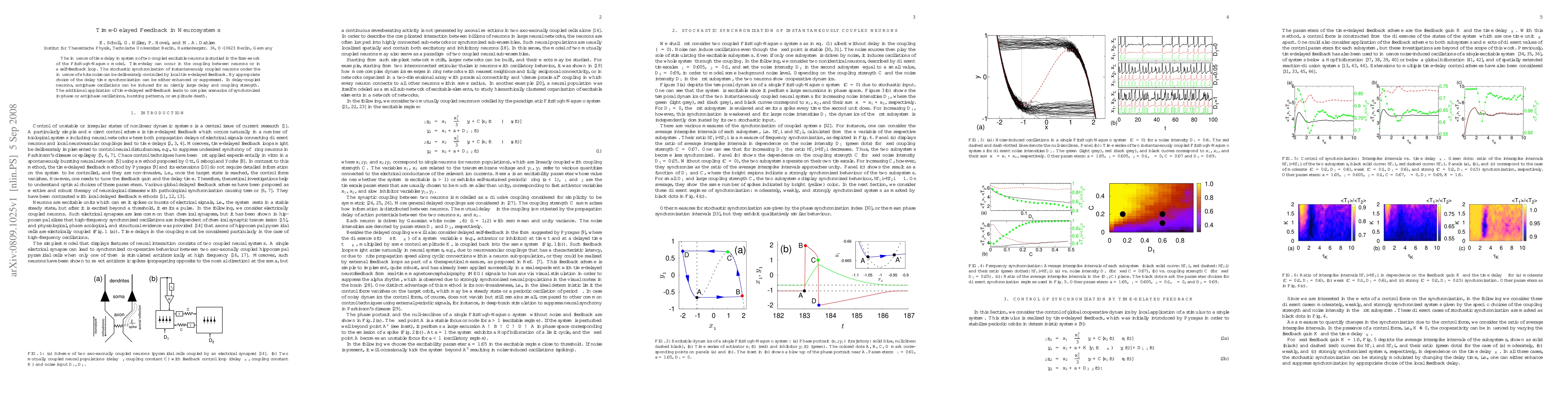 The influence of time delay in systems of two coupled excitable neurons is studied in the framework of the FitzHugh-Nagumo model. Time-delay can occur in the coupling between neurons or in a self-feedback loop. The stochastic synchronization of instantaneously coupled neurons under the influence of white noise can be deliberately controlled by local time-delayed feedback. By appropriate choice of the delay time synchronization can be either enhanced or suppressed. In delay-coupled neurons, antiphase oscillations can be induced for sufficiently large delay and coupling strength. The additional application of time-delayed self-feedback leads to complex scenarios of synchronized in-phase or antiphase oscillations, bursting patterns, or amplitude death.