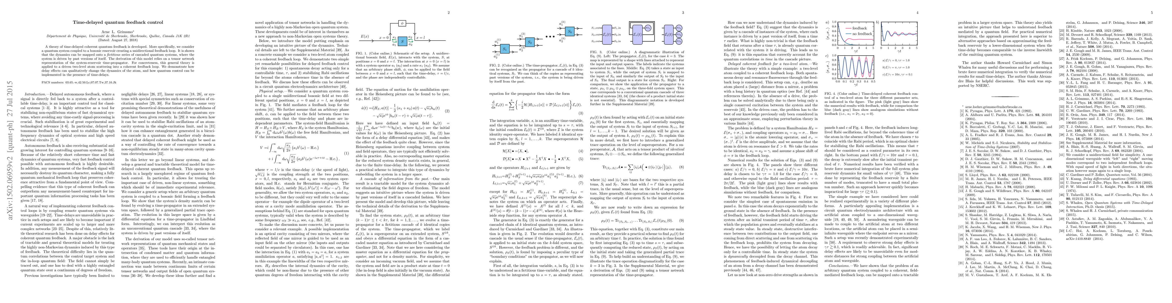 This paper develops a theory for time-delayed quantum feedback control, mapping the dynamics of a quantum system coupled to a bosonic reservoir onto a series of cascaded quantum systems driven by past versions of itself. The approach is demonstrated through a driven two-level atom in a coherent feedback loop, showing how time-delays can qualitatively alter system dynamics and enable quantum control.