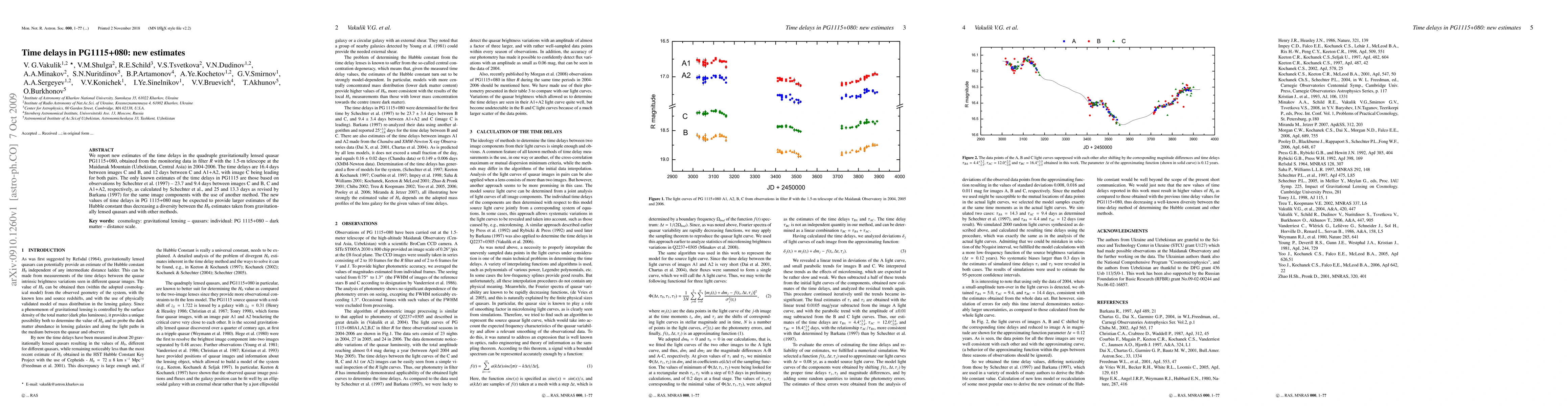 This paper presents new time delay estimates for the quadruple gravitationally lensed quasar PG1115+080, measured using monitoring data from 2004-2006. The new values are 16.4 days between images C and B and 12 days between C and A1+A2, potentially leading to more accurate Hubble constant estimates.