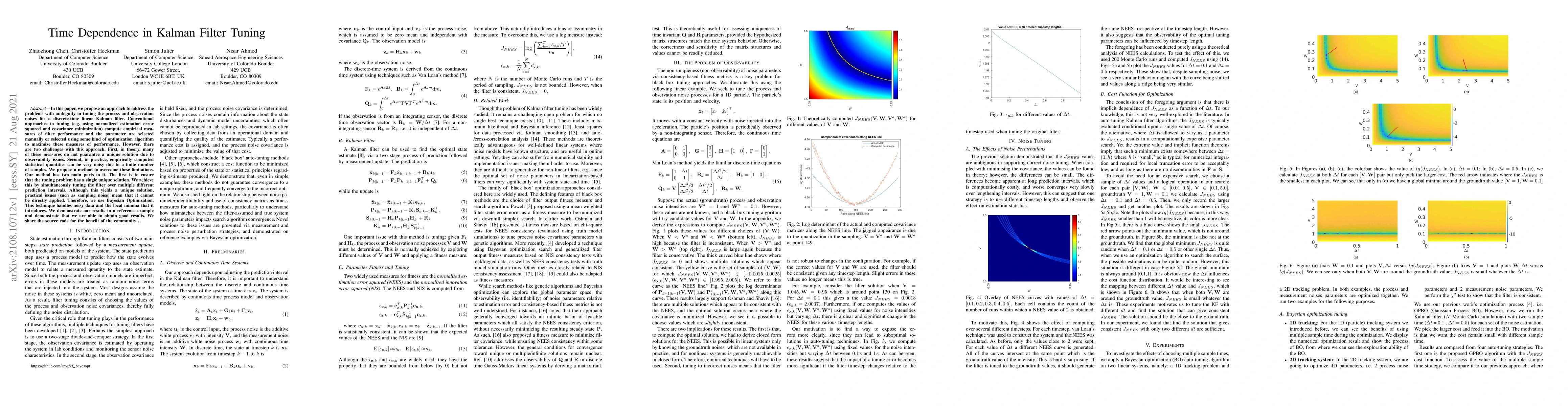 The paper proposes a method to address ambiguity in Kalman filter tuning by simultaneously tuning the filter over multiple prediction intervals and using Bayesian Optimization to handle noisy data and local minima.