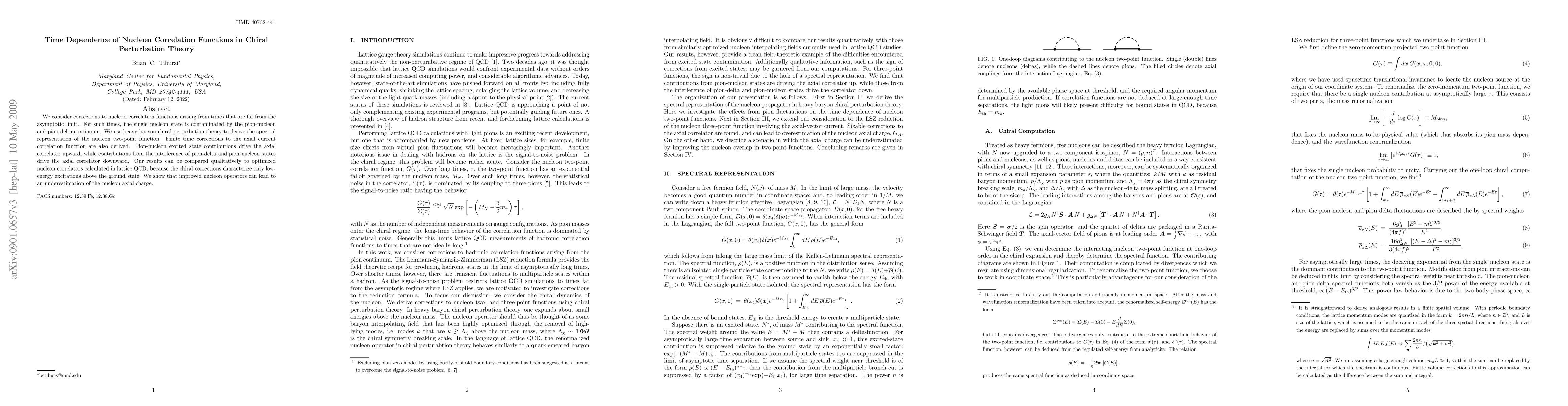 This paper investigates corrections to nucleon correlation functions in chiral perturbation theory for times far from the asymptotic limit, where pion-nucleon and pion-delta states contribute. It derives spectral representations and finite time corrections for the axial current correlator, showing that pion-nucleon excited states increase the correlator while pion-delta interference decreases it. The findings can be qualitatively compared to lattice QCD results and suggest improved nucleon operators may underestimate the nucleon axial charge.