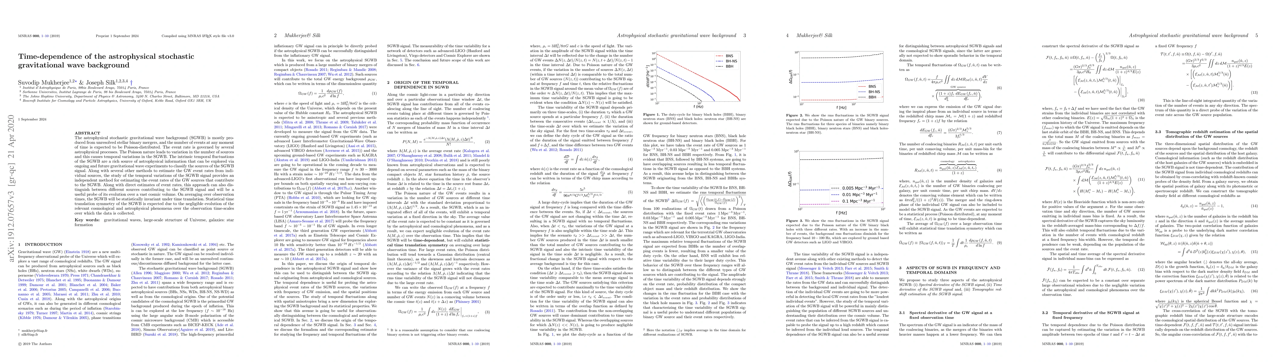 This paper investigates the time-dependent nature of the astrophysical stochastic gravitational wave background (SGWB), revealing its temporal variations driven by Poisson-distributed stellar binary mergers. It proposes that studying these fluctuations provides an independent method to estimate event rates and distinguish between different sources contributing to the SGWB, offering valuable insights into its cosmic evolution.