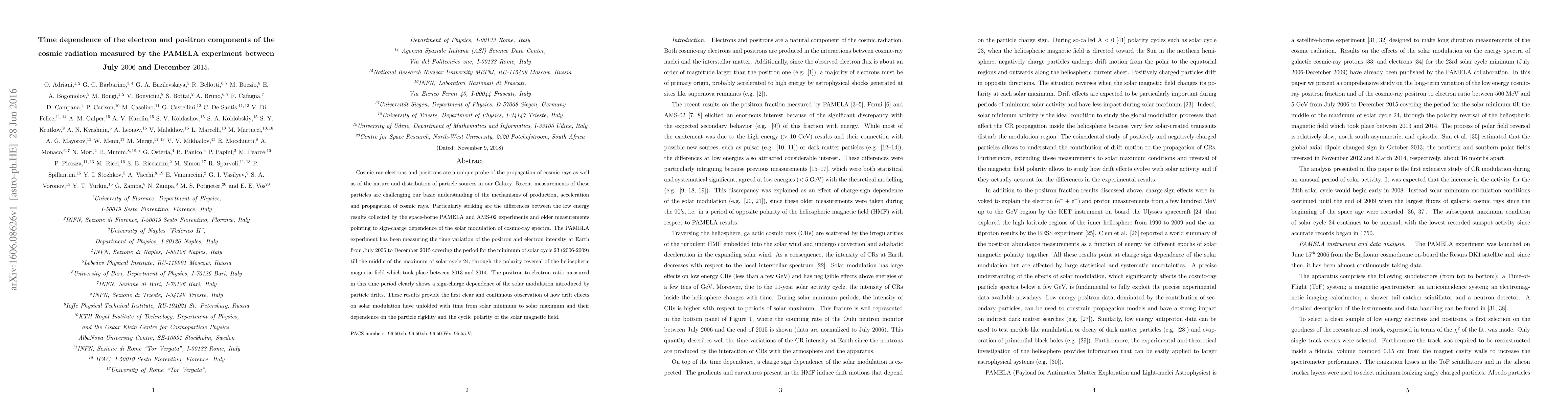 The PAMELA experiment measured the time dependence of cosmic ray electrons and positrons from 2006 to 2015, revealing a clear sign-charge dependence of solar modulation effects. These findings provide insights into cosmic ray propagation and the cyclic polarity of the solar magnetic field's influence on particle drifts.