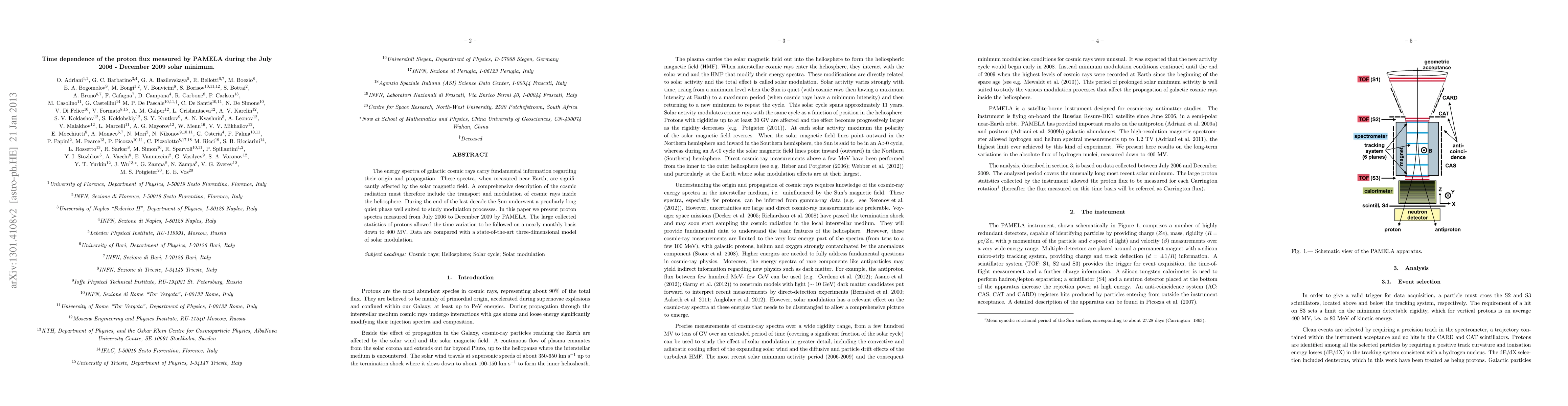 This paper reports on the time-dependent proton flux measurements by the PAMELA satellite from July 2006 to December 2009, a period during the solar minimum. The study analyzes the modulation of galactic cosmic rays influenced by the solar magnetic field, comparing the observed data with a sophisticated three-dimensional solar modulation model.