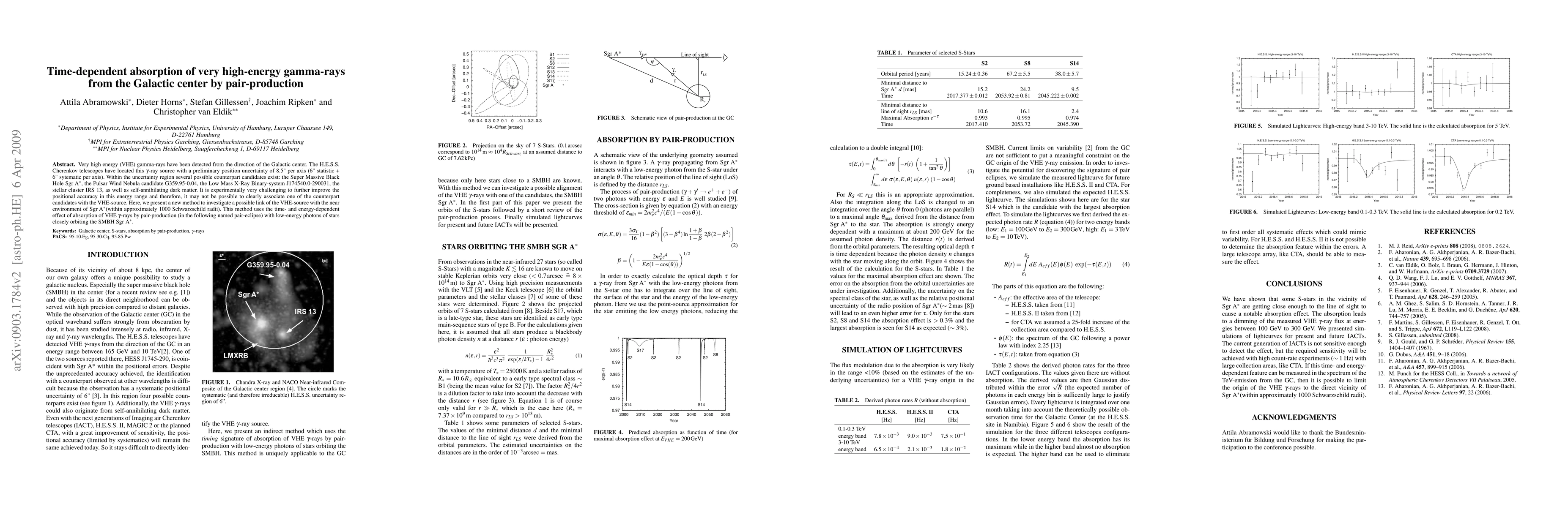 Very high energy (VHE) gamma-rays have been detected from the direction of the Galactic center. The H.E.S.S. Cherenkov telescopes have located this gamma-ray source with a preliminary position uncertainty of 8.5" per axis (6" statistic + 6" sytematic per axis). Within the uncertainty region several possible counterpart candidates exist: the Super Massive Black Hole Sgr A*, the Pulsar Wind Nebula candidate G359.95-0.04, the Low Mass X-Ray Binary-system J174540.0-290031, the stellar cluster IRS 13, as well as self-annihilating dark matter. It is experimentally very challenging to further improve the positional accuracy in this energy range and therefore, it may not be possible to clearly associate one of the counterpart candidates with the VHE-source. Here, we present a new method to investigate a possible link of the VHE-source with the near environment of Sgr A* (within approximately 1000 Schwarzschild radii). This method uses the time- and energy-dependent effect of absorption of gamma-rays by pair-production (in the following named pair-eclipse) with low-energy photons of stars closely orbiting the SMBH Sgr A*.