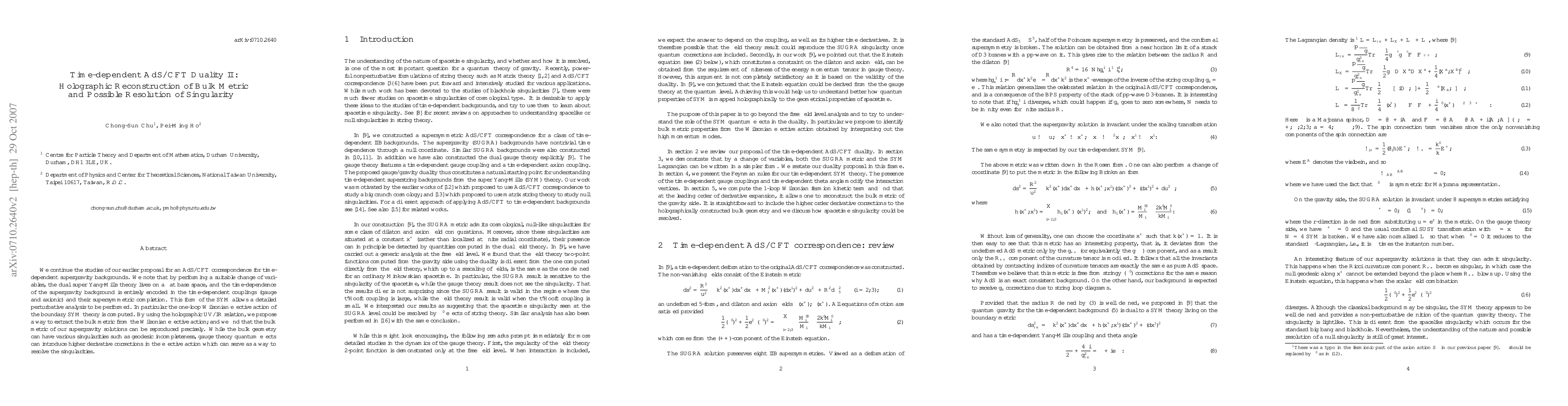 Researchers propose a method to reconstruct the bulk metric from a time-dependent supergravity background using holographic techniques, resolving singularities with higher derivative corrections.