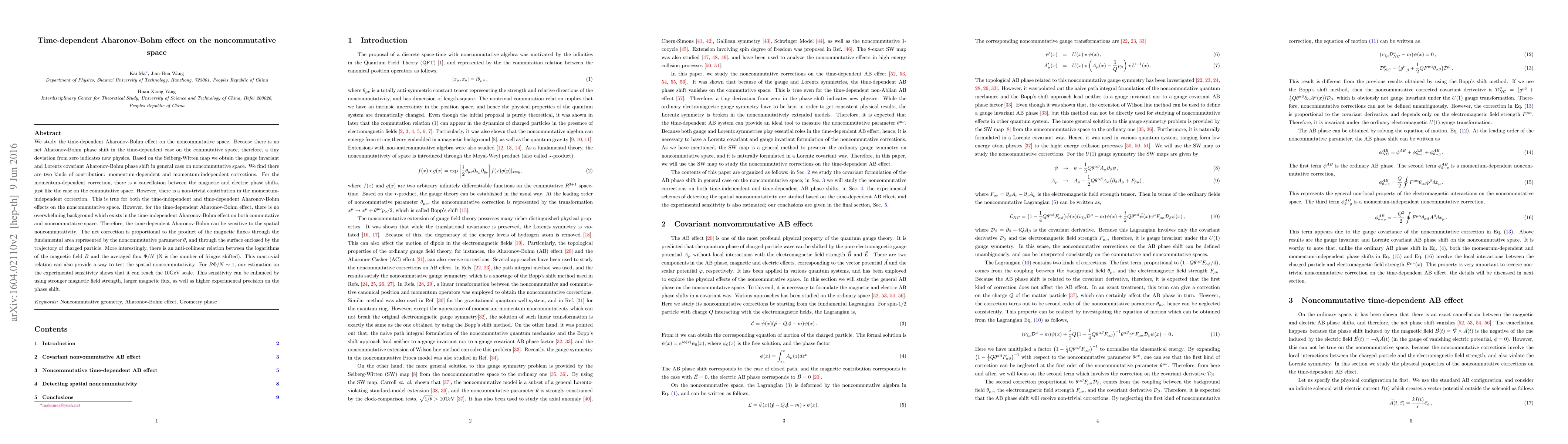 This paper investigates the time-dependent Aharonov-Bohm effect on noncommutative space, revealing new physics through a tiny deviation from zero phase shift. It identifies momentum-dependent and independent corrections, with the latter providing a non-trivial contribution, indicating sensitivity to spatial noncommutativity and suggesting experimental tests at the 10 GeV scale.