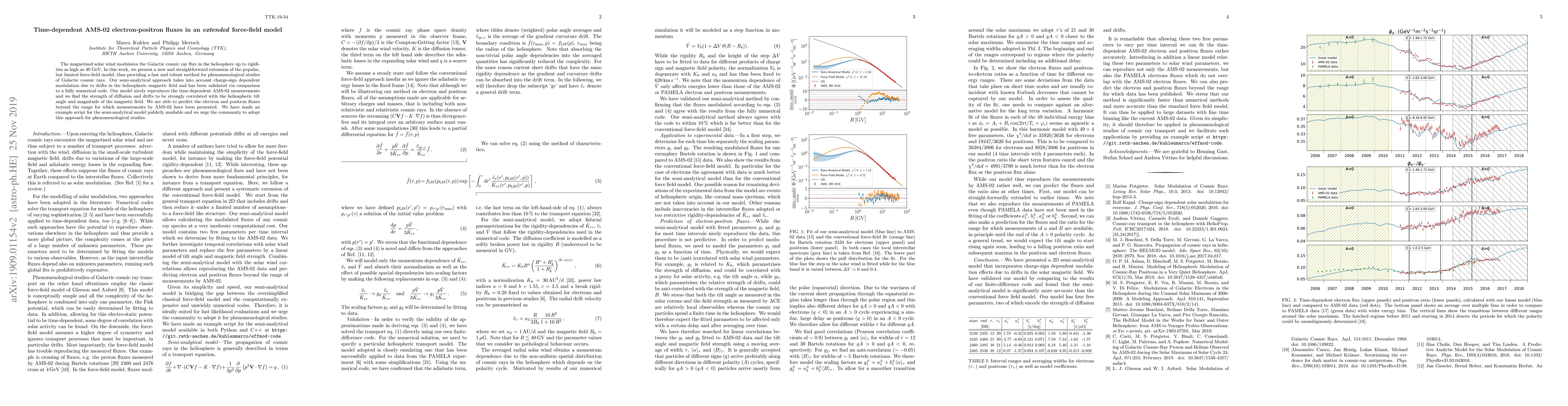 This paper presents an extended force-field model for modulating Galactic cosmic ray fluxes, validated against AMS-02 measurements. It predicts time-dependent electron and positron fluxes, correlating diffusion and drifts with heliospheric magnetic field and tilt angle.