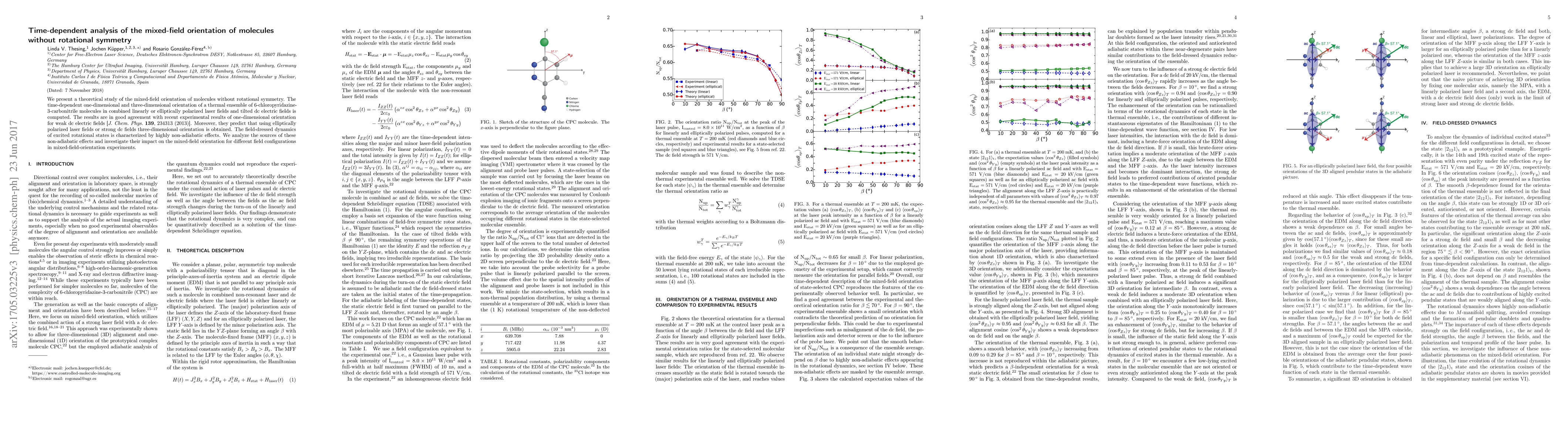 This paper presents a theoretical study on the mixed-field orientation of molecules lacking rotational symmetry, focusing on the time-dependent dynamics of 6-chloropyridazine-3-carbonitrile in combined laser and electric fields. The findings predict three-dimensional orientation under certain conditions and align well with recent experimental results.