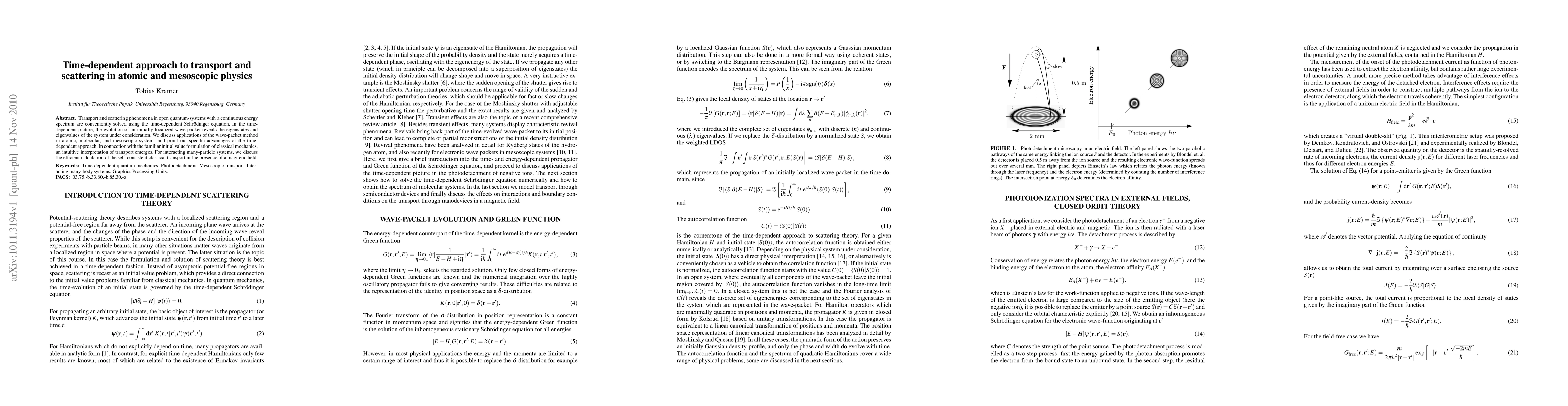This paper explores the time-dependent Schrödinger equation for solving transport and scattering in quantum systems, highlighting the wave-packet method's advantages in atomic, molecular, and mesoscopic physics. It also discusses the method's application to self-consistent classical transport in many-particle systems under magnetic fields.