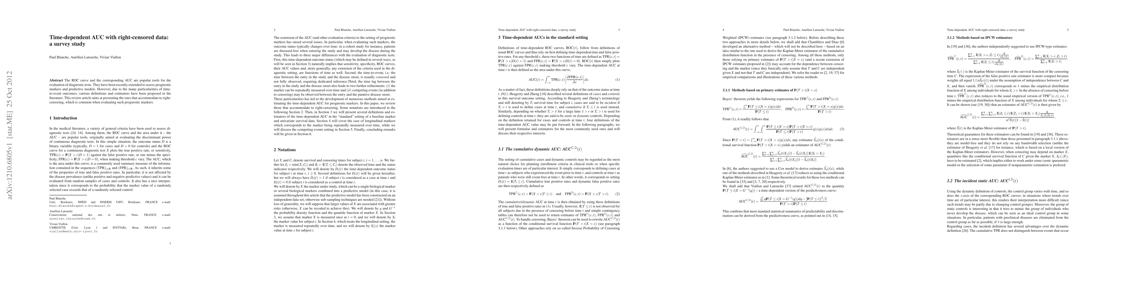 This review article discusses various methods for evaluating prognostic markers with right-censored data, providing a comprehensive overview of time-dependent AUC estimators that accommodate censoring.