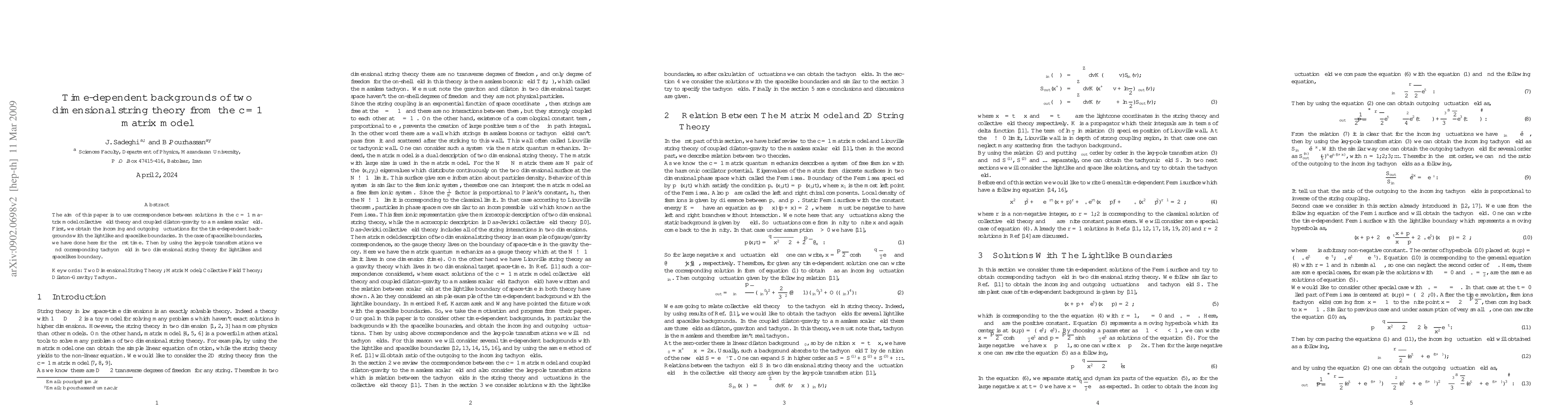 This paper explores the correspondence between solutions in the $c=1$ matrix model and coupled dilaton-gravity to a massless scalar field, focusing on time-dependent backgrounds. It introduces incoming and outgoing fluctuations for lightlike and, for the first time, spacelike boundaries, and uses leg-pole transformations to determine the corresponding tachyon field in two-dimensional string theory.