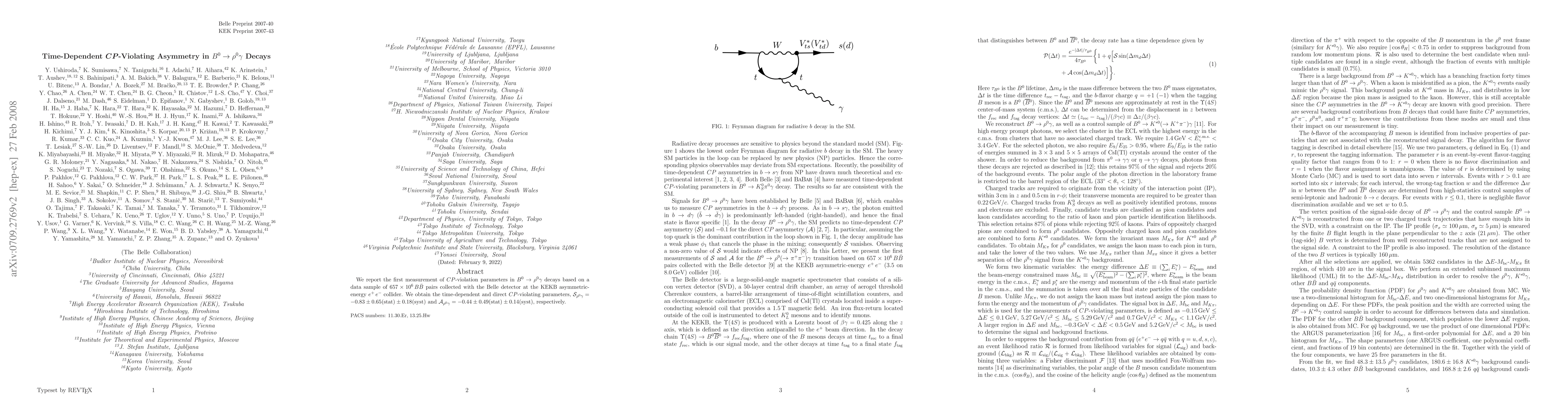 We report the first measurement of CP-violation parameters in $B^0\to\rho^0\gamma$ decays based on a data sample of $657\times 10^6 B\bar{B}$ pairs collected with the Belle detector at the KEKB asymmetric-energy $e^+ e^-$ collider. The flavor of the $B$ meson is identified from the decay products of the accompanying $B$ meson. We obtain the time-dependent and direct CP-violating parameters, $\cals_{\rhoz\gamma} = -0.83\pm 0.65(stat)\pm 0.18(syst)$ and $\cala_{\rhoz\gamma} = -0.44\pm 0.49(stat)\pm 0.14(syst)$, respectively.