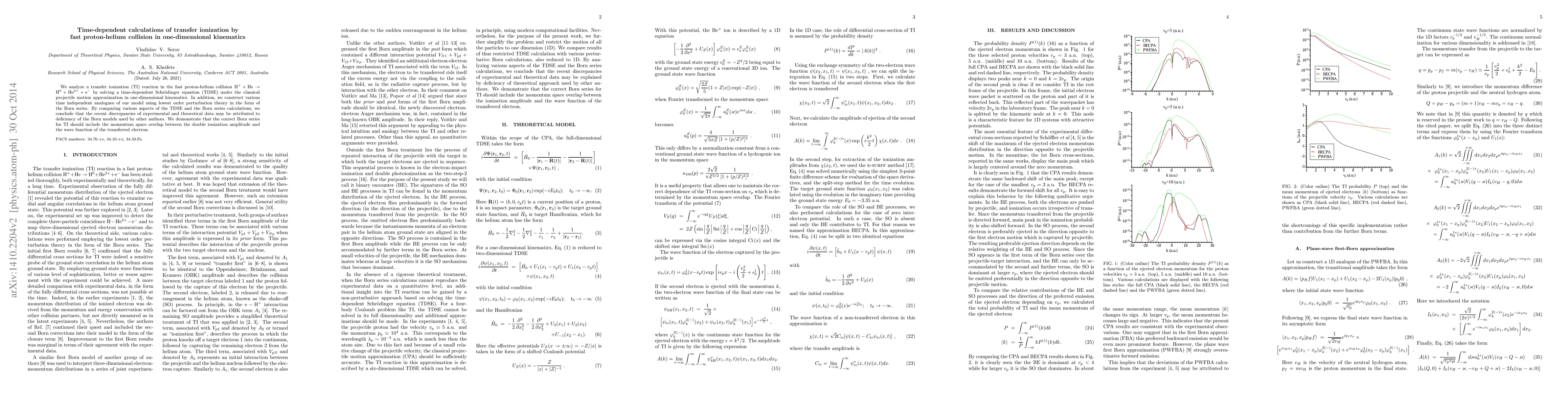 We analyze a transfer ionization (TI) reaction in the fast proton-helium collision $\rm H^+ + He \to H^0 + He^{2+} + e^-$ by solving a time-dependent Schr\"odinger equation (TDSE) under the classical projectile motion approximation in one-dimensional kinematics. In addition, we construct various time independent analogues of our model using lowest order perturbation theory in the form of the Born series. By comparing various aspects of the TDSE and the Born series calculations, we conclude that the recent discrepancies of experimental and theoretical data may be attributed to deficiency of the Born models used by other authors. We demonstrate that the correct Born series for TI should include the momentum space overlap between the double ionization amplitude and the wave function of the transferred electron.