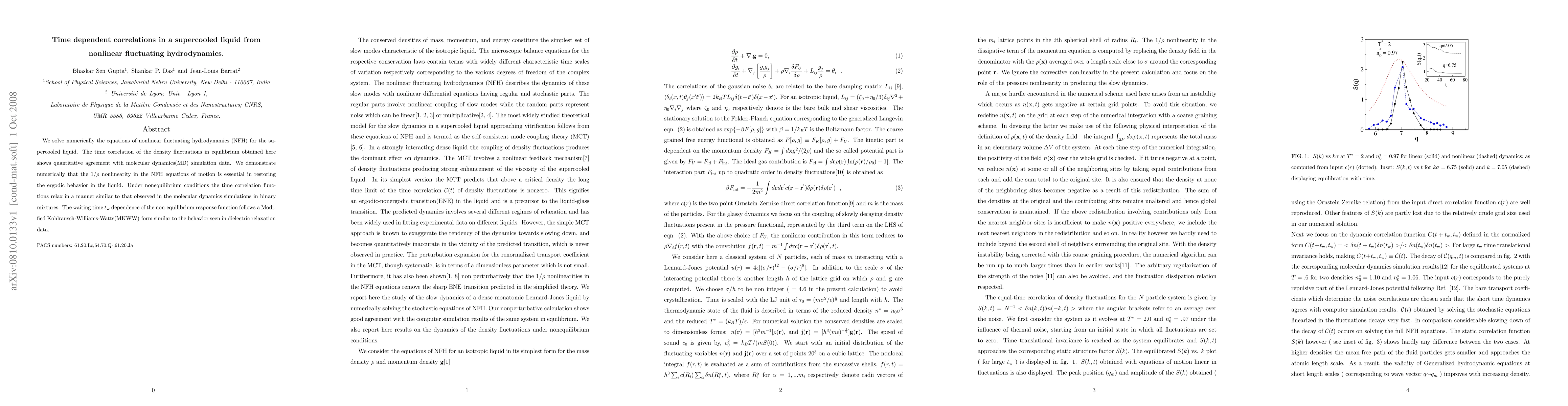 We solve numerically the equations of nonlinear fluctuating hydrodynamics (NFH) for the supercooled liquid. The time correlation of the density fluctuations in equilibrium obtained here shows quantitative agreement with molecular dynamics(MD) simulation data. We demonstrate numerically that the 1/rho nonlinearity in the NFH equations of motion is essential in restoring the ergodic behavior in the liquid. Under nonequilibrium conditions the time correlation functions relax in a manner similar to that observed in the molecular dynamics simulations in binary mixtures. The waiting time t_w dependence of the non-equilibrium response function follows a Modified Kohlrausch-Williams-Watts(MKWW) form similar to the behavior seen in dielectric relaxation data.