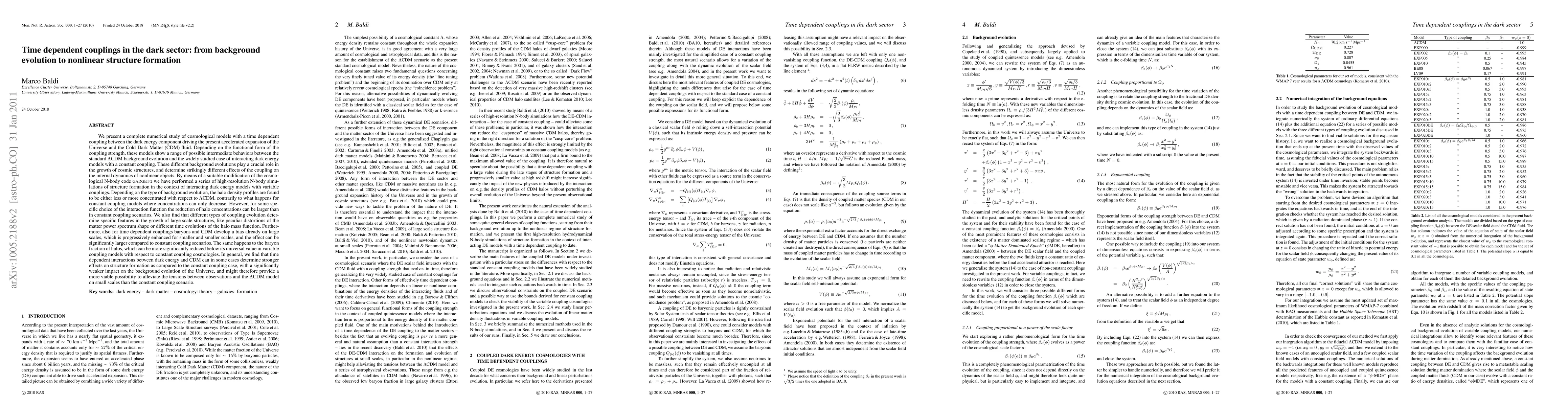 This paper explores the impact of time-dependent couplings between dark energy and Cold Dark Matter (CDM) on cosmological background evolution and structure formation. The study shows that varying coupling strengths can lead to more concentrated or less concentrated halo density profiles compared to the standard LCDM model, potentially offering a solution to tensions between observations and LCDM on small scales.